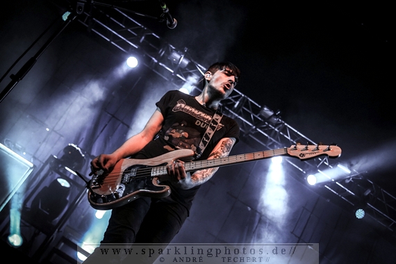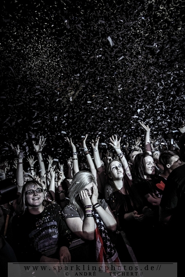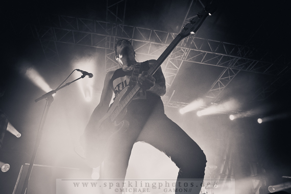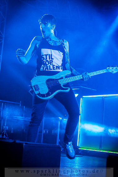 Bei Jennifer Rostock sieht das schon ganz anders aus. Mit ihrer schrulligen Art zwischen Frau und Rotzgöre weiß Sängerin Jennifer Weist einfach zu überzeugen und binnen Sekunden bricht das Eis zwischen ihr und dem Publikum. Scheinbar übermannt von den euphorischen Massen zu ihren Füßen braucht Frau erst mal einen Schnaps. Dieses Ritual wird natürlich nach jedem Lied im Set wiederholt. Mexikaner für die Band! Auffallend ist, dass ihre Fans sowohl bei den neuen, als auch bei den alten Songs wunderbar mitgehen und auch durch Textsicherheit überzeugen. Auch wenn Jennifer Weist versichert, dass sie wegen ihrer anwesenden Schwiegereltern nichts über Brüste und Penisse sagen würde, nimmt man dies lediglich mit einem Schmunzeln im Gesicht wahr. Abwarten heißt hier die Devise. K.B.A.G. vom neuen Album Schlaflos geht gewaltig in die Beine und bis zur letzten Reihe wird in der gut gefüllten Turbinenhalle mitgewippt und auch gesungen.