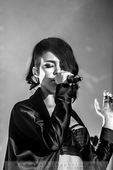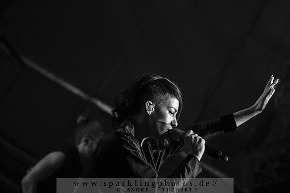 Als ersten Song wählten sie Im Rausch der Gezeiten, bei dem Sängerin Alina erwartungsvoll und lasziv mit einem seidenen Umhang im Hintergrund eine Schattenerscheinung, vor der riesigen LED-Leinwand, darstellte. Nach diesem mit einigen Dubstep-Elementen versehenen Song sang sie Himmelblau. Ein Titel, der wie auch das nachfolgende Lied Liebe ist meine Rebellion mit englischem Refrain auskommt. Damit auch jeder weiß was gemeint ist, blieben die Songtitel deutsch. Ob nun "…you paint the dark sky blue…" bei Himmelblau gesungen wird oder "…Love is my rebellion…" zu Liebe ist meine Rebellion. Manches klingt einfach besser wenn man es beim Englischen belässt, …so scheint es.