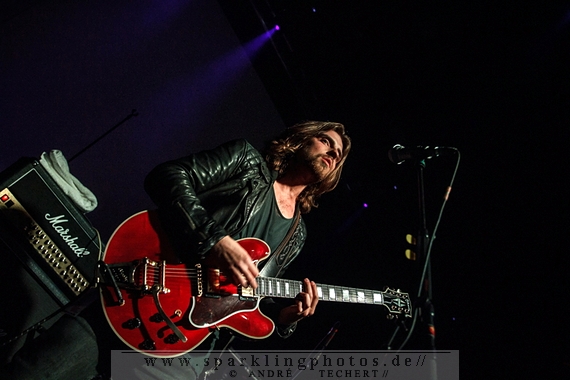 Bei LIAM handelt es sich um eine komplette Bandformation, jedoch mit Fokus auf den Sänger und Gitarristen mit seiner markanten Stimme. 30 Minuten blieben ihm um im Dortmunder FZW die Besucher neugierig auf seine demnächst erscheinende Debutplatte zu machen. Vieles weiß man noch nicht von ihm und seiner Band. Nur, dass er als ein potentieller Newcomer 2014 gehandelt wird. Optisch ähnelt er ein wenig Russell Marsden von Band Of Skulls. Nicht nur wegen seines Erscheinungsbildes, sondern auch wegen der Vorliebe für Gretsch-Gitarren. Der Sound seiner vorgetragenen Songs ist sehr breit. Hymnengleiche Kompositionen aus kontinuierlichen Melodien zweier Gitarren werden erschaffen und dazu hier und da Einsätze von Synths oder klassischen Pianoklängen geboten. Songs wie Alles Wird Vergehen und Feuer sind heute dabei. Ersterer punktet mit dem auftretenden Gänsehaut-Gefühl. Eine Synth-Wand entsteht, kräftig einschlagende Drums geben den Rythmus an – dazu dezente Gitarrenparts die synchron dem Gesang des Sängers folgen. Es wird sehr viel Wert auf den instrumentalen Klang der Songs gelegt, damit wissen sie umzugehen und die Besucher zu faszinieren. Der zweite angesprochenen Song Feuer repräsentiert die erste Singleauskopplung und erinnert instrumental z.B. bei der Bassline ein wenig an The Joy Formidable. Feuer hat der Song allemal, doch ist der Aufbau zwischen beiden genannten Songs nicht wirklich unterschiedlich. Stimmlich originell, doch man kann es nicht leugnen: eine Mischung aus Clueso und Phillipp Poisel ist da erkennbar, aber auf jeden Fall sehr überzeugend. Mal sehen was wir von ihm dieses Jahr noch zu hören bekommen.