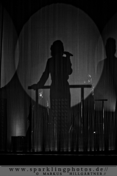 Pünktlich um acht Uhr ging das Saallicht aus und Ina Müller, ihre Band und Background-Sängerinnen betraten die Bühne, waren jedoch vorerst nur als Schatten auf einem die Bühne verdeckten Vorhang zu erkennen. Dieser konnte in einzelnen Bahnen hoch gezogen werden und diente im weiteren Verlauf des Abends als Projektionsfläche für Hintergrundbilder.