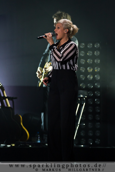 Ina Müller Konzerte sind keine klassischen Konzerte, dafür redet sie zu viel. Vielmehr ist es Kabarett mit Band, denn zu nahezu jedem Song präsentiert Ina Müller eine Geschichte. Der Umfang der Hintergrundgeschichte oder Einleitung eines Songs kann durchaus die Länge des eigentlichen Liedes überschreiten, ohne dass dem Publikum langweilig wird. Inas Erzählungen sind durchweg witzig, charmant, unterhaltsam und kommen mindestens so gut an wir ihr Gesang. Es ist das Gesamtpaket „Ina“ was den Reiz ausmacht, denn auf der Bühne wirkt sie sehr natürlich und man sieht ihr den Spaß förmlich an. Dieser Spaß breitete sich schnell in der LANXESS Arena aus und steckte die Zuhörer an.