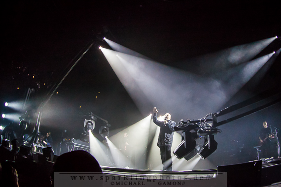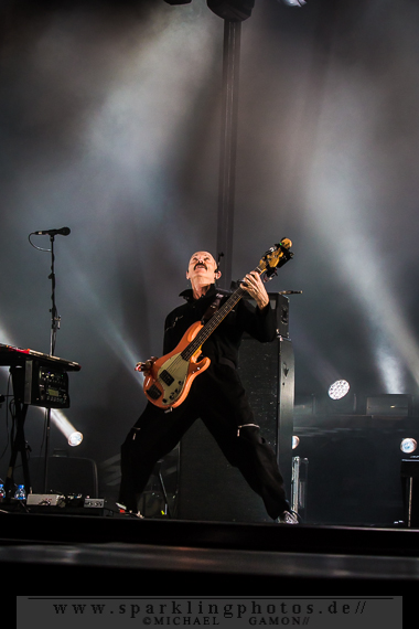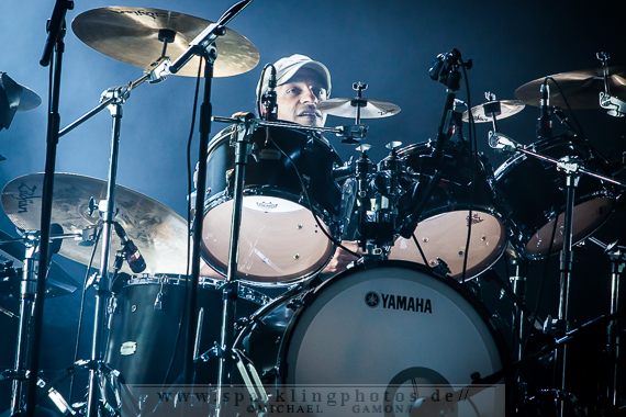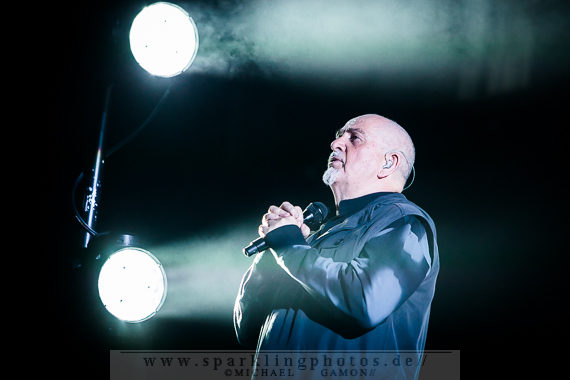 The Family and the Fishing Net, der mit seinem düster psychedelischen Sound zu begeistern wusste, kreierte eine atemlose Atmosphäre, die den Zuschauer sofort in den Bann zog. Peter selbst durfte bei der Performance des Stückes den Licht- und Kamerakran über die Bretter bewegen, was der Dynamik der Show einen weiteren Kick verlieh. Aber nicht nur die Showelemente begeisterten. Mr. Gabriel hatte um sich eine fantastische Musikerriege versammelt, denen man die Spielfreude förmlich ansehen konnte, was sich auch auf die Fans übertrug, die ihre Helden immer wieder mit offenem Applaus belohnten. Natürlich durfte auch nicht der Kultklassiker Solsbury Hill fehlen, und das Publikum durfte an den richtigen Stellen „Boom Boom Boom“ rufen und klatschen.