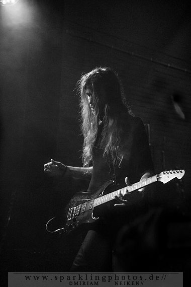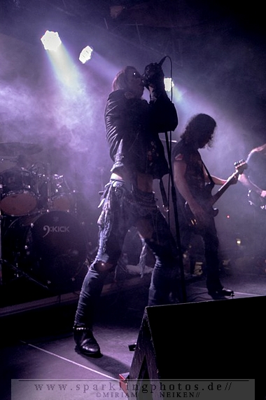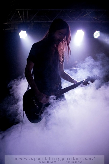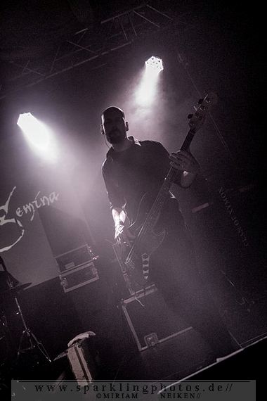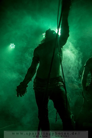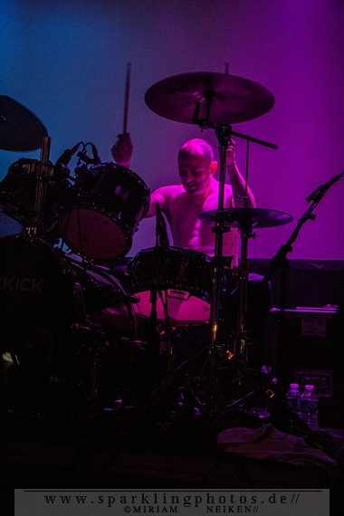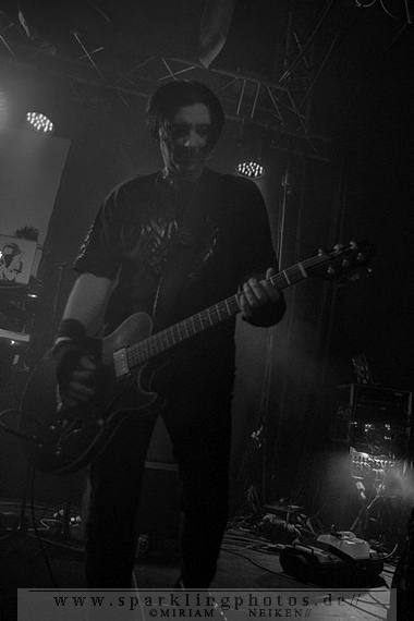 Nun darf es dann auch wieder krachiger werden. This Morn’ Omina, eine belgische Band deren Stil als Ritual Trance, Tribal Industrial oder auch als Noise bezeichnet wird. Gründer Mika Goedrijk ist aktiv auch bei anderen Bands wie Pow[d]er Pussy, Nebula-H, Andraculoid oder Project Arctic tätig. An diesem Abend aber mit This Morn’ Omina. Dank seiner mitreißenden Performance sind sogar Besucher die eigentlich mit dieser Musik nicht allzu viel anfangen konnten, von der dynamischen Darbietung der Band angetan. Somit gibt es nun in den vorderen Reihen niemanden mehr, der still stehen und sich den Beats der Band entziehen kann. So kam es dann auch zu der „Verführung“ einer Dame aus dem Publikum, durch den Sänger. Natürlich, und von Anhängern der Band herbeigesehnt, darf ihr Lied One-Eyed Man, welches sie sich zum krönenden Abschluss aufgespart haben, nicht fehlen.