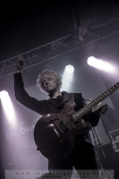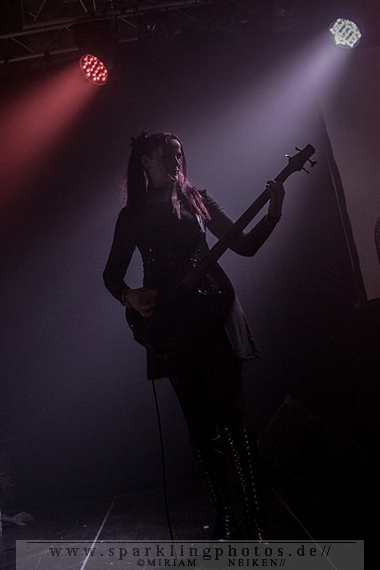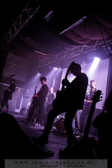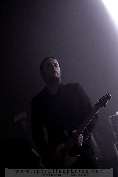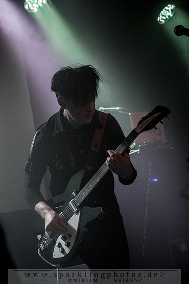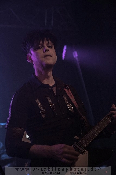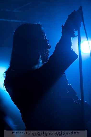 Mit freudigem Applaus betreten als letzte Band des Abends, Ronny Moorings mit seiner ständig wechselnden Belegschaft als Szene-Urgestein Clan of Xymox die Bühne. Sie zählten insbesondere in den Achtziger Jahren zu den bedeutendsten Vertretern im Dark-Wave. Der Gründer der Band kümmert sich heute nicht nur um den Gesang, sondern auch um das Beisteuern einer zweiten Gitarre. Die Niederländer wissen trotz ihrer immensen Diskographie eine stimmige Setlist zu präsentieren, mit dem unter anderem live unerlässlichen Titel Louise. Das Publikum im De Klinker weiß dies natürlich zu schätzen und dankt der Band mit grandioser Stimmung und rhythmisch wogenden Bewegungen. Somit lassen es sich Ronny Moorings und Anhang auch nicht nehmen, nach einer kurzen Verweildauer abseits der Bühne für eine längere Zugabe wiederzukehren.