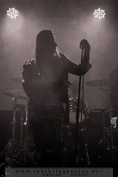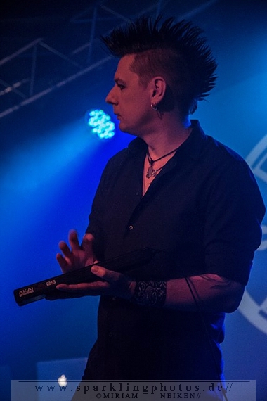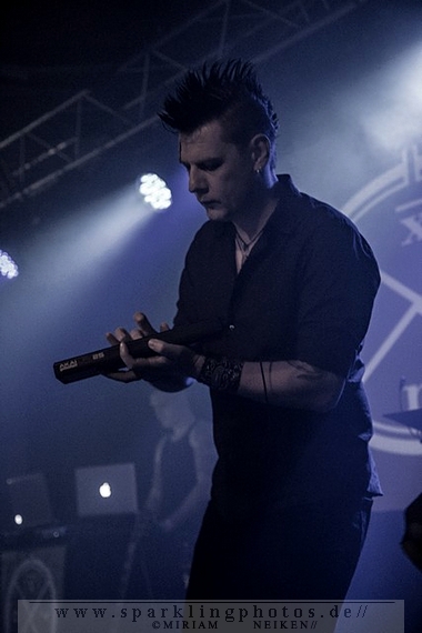 Es wird wieder ruhiger. Triarii, ein Einmann-Musikprojekt aus dem Genre des Martial Industrial, dessen Name sich von den Elitesoldaten der römischen Schlachtordnung, den Triariern, herleitet. Pathetisch-erhabene Musik zu der Christian Erdmann vereinzelt verzerrten Gesang beisteuert. Ein recht organischer Auftritt, der sich jedoch nicht zu verstecken braucht und den anderen Acts des Abends in nichts nachsteht, auch durch seine beeindruckende Videopräsentation von (passenderweise und typisch für dieses Genre) Kriegsszenarien, welche eine Einheit mit den Klängen bilden.