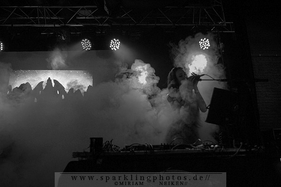 So lässt Tzolk’in auch nicht lange auf sich warten und betritt die Bühne. Es präsentiert sich ein Kooperationsprojekt zwischen Empusae und Flint Glass, welche in den Bereichen Dark Ambient, zeitgenössische Musik und rituelle experimentelle elektronische Musik angesiedelt ist. Das Projekt ist inspiriert von der Maya-Mythologie und dem antiken Maya-astrologischen Kalender, welcher den gleichen Namen trägt. So eröffnen Gwenn Tremorin und Nicolas van Meirhaegh mit majestätischen und epischen Klägen, kriegerisch, mit einem Gefühl der Tragödie, das Porta Nigra Festival. Das Publikum taucht in andere Welten ab und lauscht, stimmungsvoll wiegend, den düsteren Klanglandschaften.