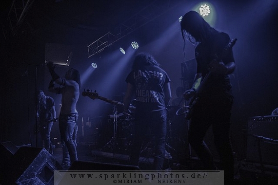 Und so wartet bei Ankunft bereits eine kleine Gruppe vor dem De Klinker, in Belgien, einer gern gebuchten Location für diesen Event. Die gewohnte Pünktlichkeit des Festivals funktionierte dieses Mal allerdings leider nicht so ganz. Der Einlass, ursprünglich für 16:00 Uhr vorgesehen, verzögert sich um eine knappe halbe Stunde. Doch kaum in der kleinen Halle angekommen, wird auch schon die Nebelmaschine angeworfen, dichter Qualm, der uns den Abend durch begleiten wird, macht sich breit.