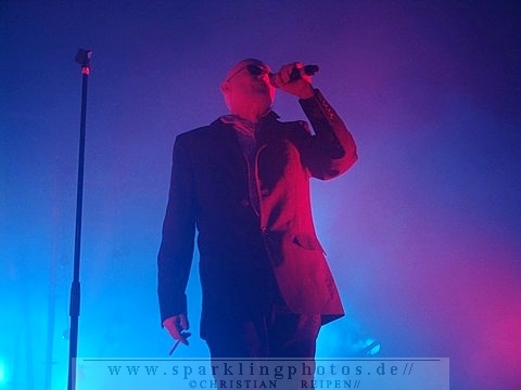 Nach gut einer halbe Stunde Umbaupause werden dann die Nebelmaschinen angeworfen bis man auf der Bühne nur noch die leuchtenden Apple Logos von Dr. Avalanche erkennt, dem Drumcomputer der Sisters. Kurz darauf betreten die beiden Gitarristen, gefolgt vom einzig verbliebenen Gründungsmitglied Andrew Eldritch, die Bühne und starten mit More, ihrem wohl größten Radio Hit. Mit Ribbons folgt darauf ein weiterer Song vom 1990er Vision Thing Album.