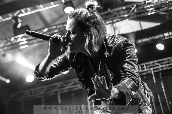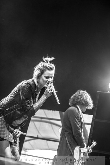 Zum 10-jährigen Jubiläum des "Sportpark-Siegerland" hatten Revolverheld am Tag zuvor bereits die dazugehörige Eishalle restlos ausverkauft, in der nun Jennifer Rostock das Vergnügen hatten weiterzufeiern. Und JR wären nicht JR, wenn sie das nicht könnten. Eine Spezialität für sie, denn langweilig ist vieles, nur kein Jennifer Rostock Konzert. Und als Kontrast zu den Softrockern am vorherigen Tag, gab es an Tag 2 eine typisch provokante Show mit wieder Mals überzeugendem und kräftigem Sound.