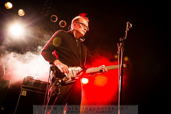 Hier stand eine Band auf der Bühne, die eine Idee von ihrem Jubiläum hatte, die sich ein Programm ausgedacht hatte und dann darauf vertraute, dass die Gäste sich darauf einlassen würden. Und das taten die Besucher an diesem Abend auch. Die Erwartung war groß, die Begeisterung war aber noch größer. Dass nicht so viel getanzt wurde, lag wohl eher am Alter des Publikums, als an mangelnder Freude. Denn jedes Gesicht in das ich blickte, strahlte eben jene große Freude aus, die auch die Herrschaften auf der Bühne versprühten. Und so wurde dann auch mitgesungen, jeder für sich, in Erinnerungen, nicht gröhlend… Schließlich ist das hier ein Konzert von Blumfeld, wir sind schließlich politisch und sexuell andersdenkend.