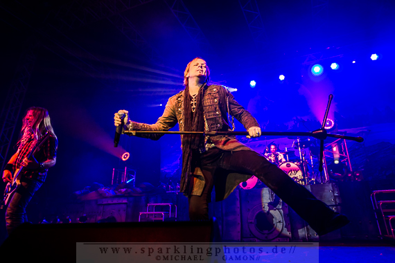 Den Startschuss in der Oberhausener Turbinenhalle setzen Starchild, die uns sofort in ihren Bann ziehen. Vor allem Frontmann Sandro Giampietro schafft es, uns mit seiner markanten Stimme zu packen und uns bei Hymnen wie It’s My Race, Still My Planet oder dem Titelsong Starchild in ferne Sphären driften zu lassen. Natürlich ist der mal treibende, mal bedrohliche Sound der Combo nicht nur sinnesberauschend, sondern feuert auch unsere Körper von Zeit zu Zeit zum Mitmachen an. Ein toller Start!