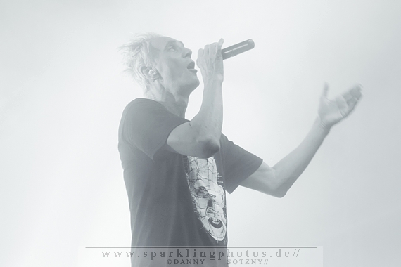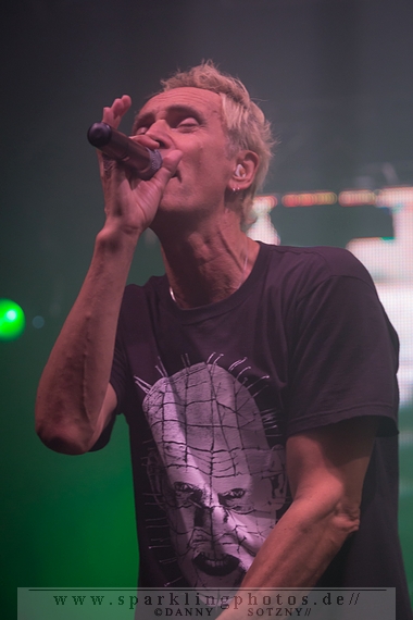 Eine Mischung aus neuen und alten Songs stand auf dem Programm. Dennoch fehlte es ein wenig an Stimmung. Bei den zu langen Songs und ständigen Textwiederholungen ist man als Nicht-Fan schon irgendwann gelangweilt. Zumal der Leadsänger auch überhaupt nicht mit dem Publikum interagieren wollte, sondern für mein Empfinden auf der Bühne unkontrolliert herumsprang und vor sich hin sang, als wäre er abwesend oder in einer anderen Welt. Sein Blick suchte sehr selten das Publikum – aber anscheinend sind die Fans das gewohnt und mögen diese Art der Performance. Das Publikum dankte es der Band mit viel Applaus und Bill Leeb verschwand nach einem kurzen “Danke” fluchtartig von der Bühne in den Backstagebereich – ob er in seiner gebeugten introvertierten Haltung bemerkt hatte, dass seine Fans begeistert waren?