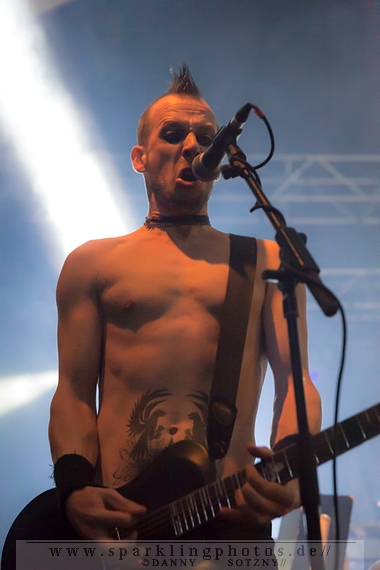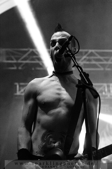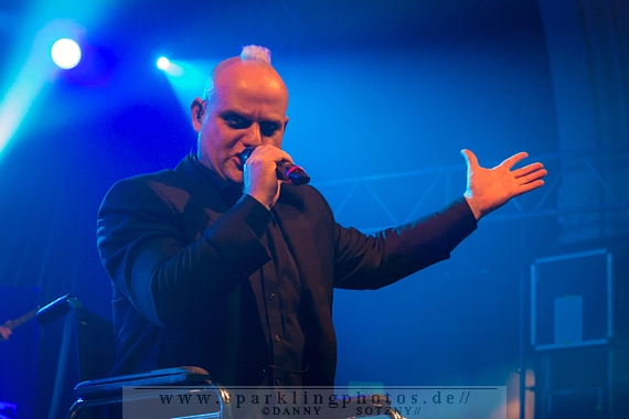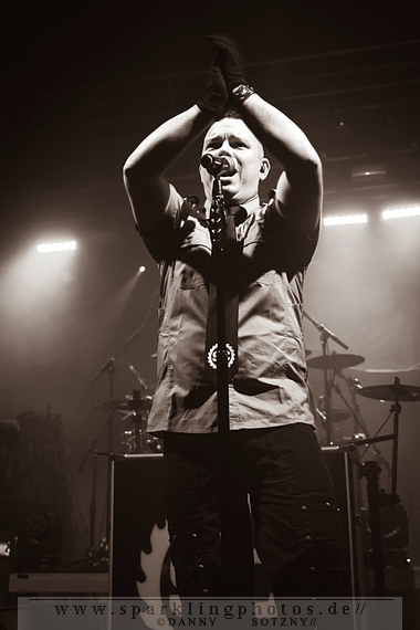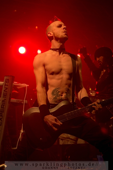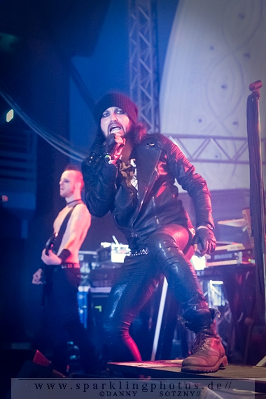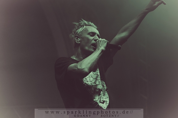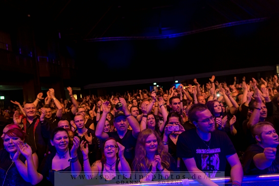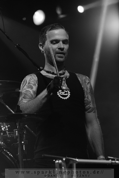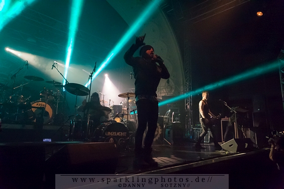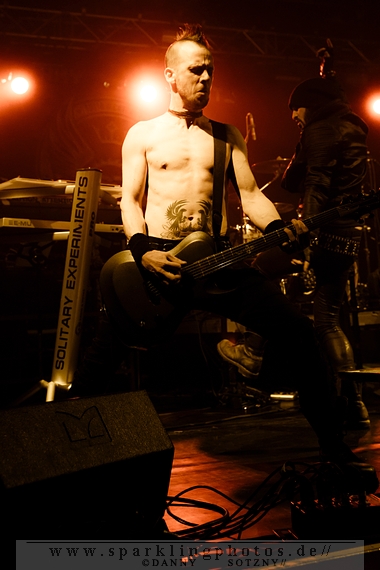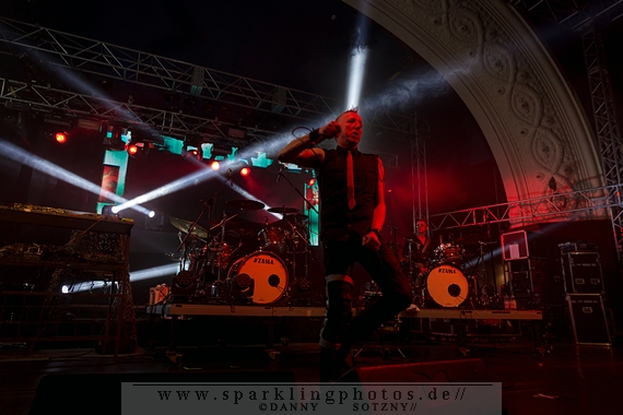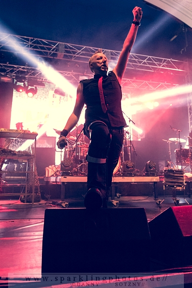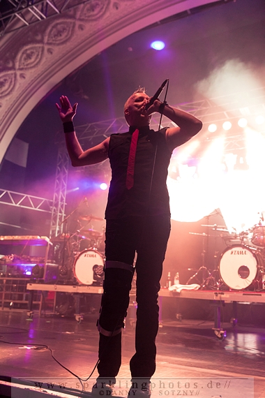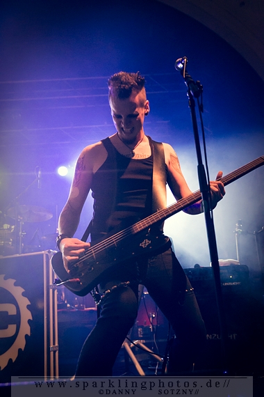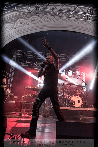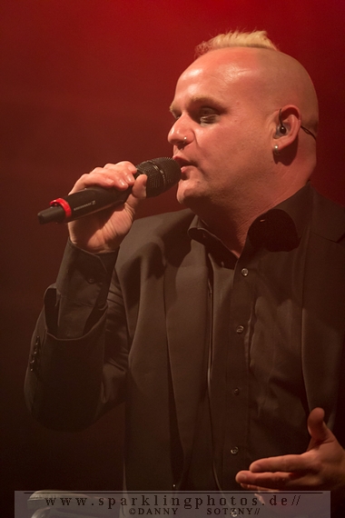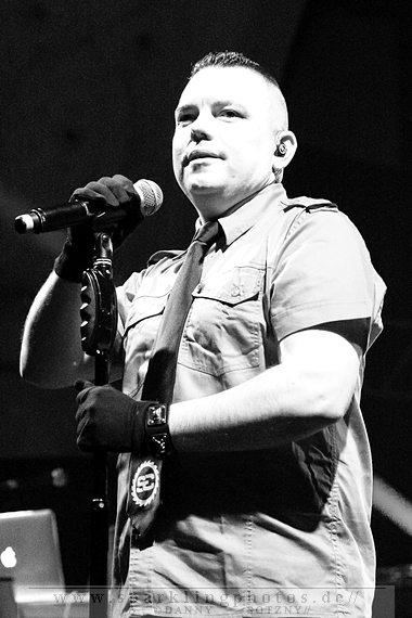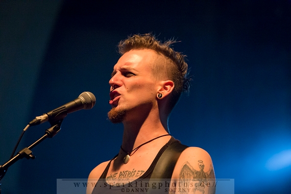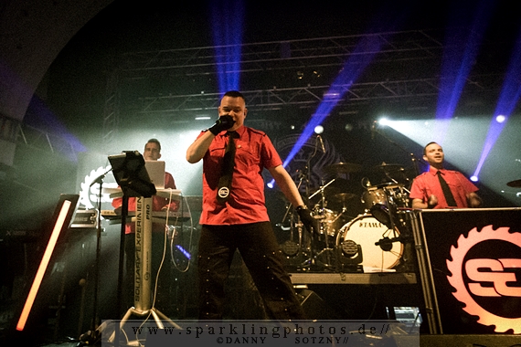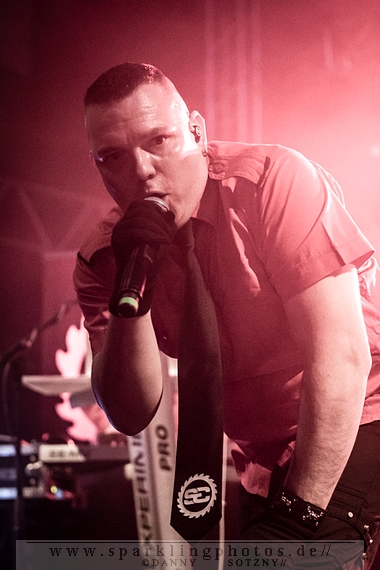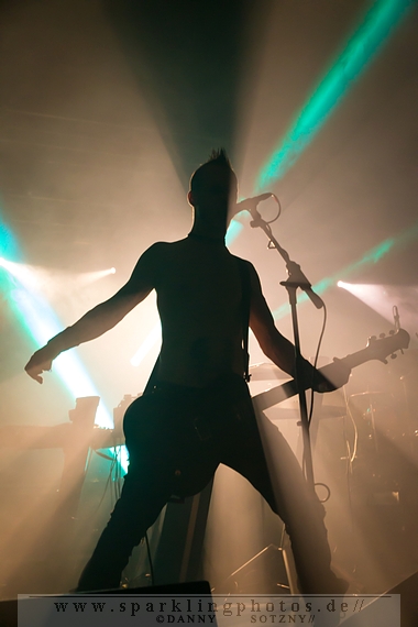 Spätestens jetzt war der Saal ordentlich gefüllt und mit den ersten Klängen kam auch Bewegung in die Massen. Die zuvor explosive Stimmung ebbte etwas ab. Was sicherlich an der Mischung aus Pop und EBM lag, die mehr zum Tanzen als zum Abrocken animiert. Die Band um Sänger Dennis Schober gab alles, um die Fans mit Ihrer Musik zu begeistern, was von dem Publikum mit Applaus und Jubel honoriert wurde. Besonders hervorzuheben war Drummer Frank Glaßl, der das Bühnenbild durch seine fast schon Workout-ähnliche Performance vervollständigte. Es machte Spaß, ihm bei seinen Aktionen zuzusehen und er animierte sicherlich auch noch ein paar Leute mehr zum Mittanzen. Wie bereits zuvor ließ die Akustik auch hier etwas zu wünschen übrig – Soundcheck Fehlanzeige. Von Song zu Song stieg aber trotzdem die Stimmung wieder im Saal und spätestens bei Rise and Fall sangen die Leute lautstark mit. Mit ihrem letzten Lied Stars verabschiedeten sie ihre Fans – für meinen Geschmack fehlten hierbei die Feuerzeuge – aber dennoch ein guter Abschluss.