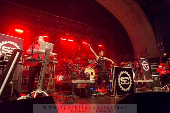 Nach kurzer Umbauphase und mit mittlerweile 20-minütiger Verspätung kamen Solitary Experiments [GALLERY] auf die Bühne. Eine Band, die dieses Jahr ihr 20jähriges Bühnenjubiläum feiern kann und mittlerweile 11 Alben, 4 EPs und 2 Tapes herausgebracht hat.