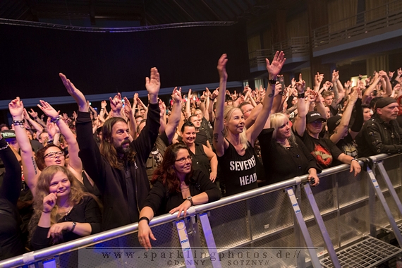 Auch bei den neueren Songs war die treue Fanschar textsicher. Schade war nur das etwas eingekürzte Konzert, ein Lied wurde komplett gestrichen und Forgiven / Revenge / My Deal… wurden zu einem Medley zusammengestellt. Ob es an dem Gesundheitszustand von Martin oder am Zeitplan lag, darüber kann man nur spekulieren. Ein Highlight war auf alle Fälle noch das Schlagzeug-Battle zwischen Katha und Martin, bei dem das Publikum lautstark mitmachte und das Haus Auensee ein letztes Mal für diesen Abend so richtig zum Beben gebracht wurde. Jeder im Publikum spürte, mit welcher Freude, Spass und Herzblut diese Band performte und den Auftritt genoss. Sehr sympathisch und fan-nah kommen diese vier rüber und einen würdigeren Abschluss für den ersten Abend des GMK konnte es nicht geben. Jeder der bei diesem Konzert war, kann sich auf den Auftritt im Gewandhaus freuen – Emotionen pur.