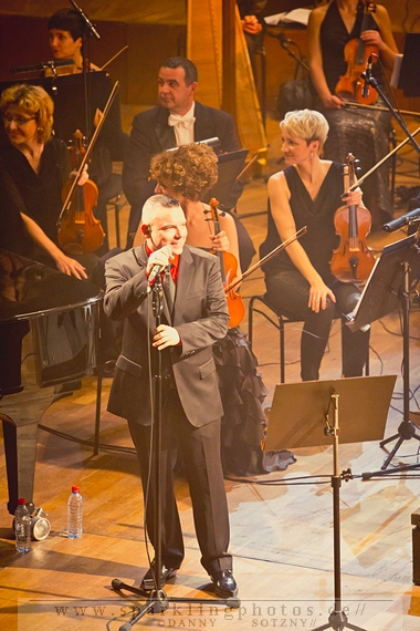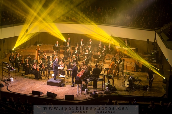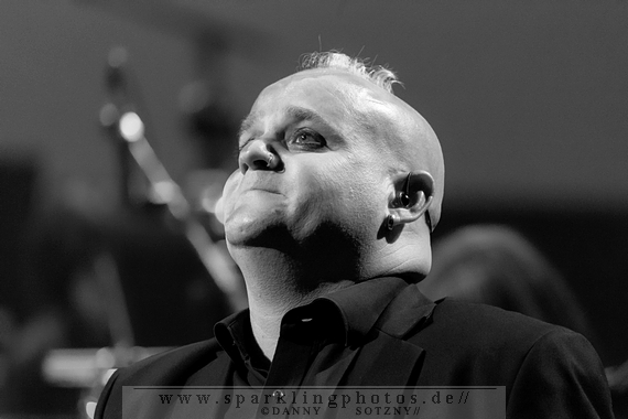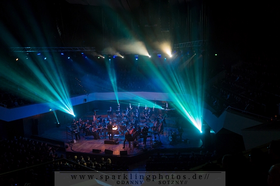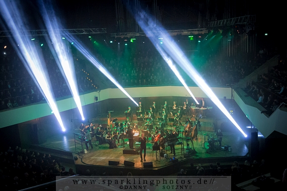 Nur das Piano verschwand im Bühnenboden und 5 Minuten später kamen auch schon die Musiker von FLA auf die Bühne und begannen, zusammen mit dem Orchester ihr Intro zu spielen. Die Gäste begrüßten FLA mit Applaus, wenn auch etwas zurückhaltender als bei der vorigen Band. Beim Intro wurde man ganz stark an Filmmusik erinnert, das klang wirklich super und das Orchester hat das ganze Stück aufgewertet. Frontmann Bill Leeb kam wie am Tag zuvor erst nach dem Intro mit gesenktem Kopf und kurz ins Publikum winkend auf die Bühne. FLA waren an diesem Abend der einzige Act mit Synthesizer und Schlagzeug. Die ersten beiden Lieder Airmech und Deadened waren daher sehr beatlastig und das Orchester ging bei dem Krach unter. Bei weiteren Liedern war das Orchester größtenteils gar nicht involviert, sodass man sich nicht wie bei einem Klassikkonzert fühlte. Bei Ghosts und Lose wurde das Orchester wieder mehr gefordert und es klang um einiges besser – wieder dieser Touch von Filmmusik. Warum ist die Stimme von Bill Leeb bei solch einem Konzert durch das Micro verzerrt? Das passt einfach nicht in das Konzept.