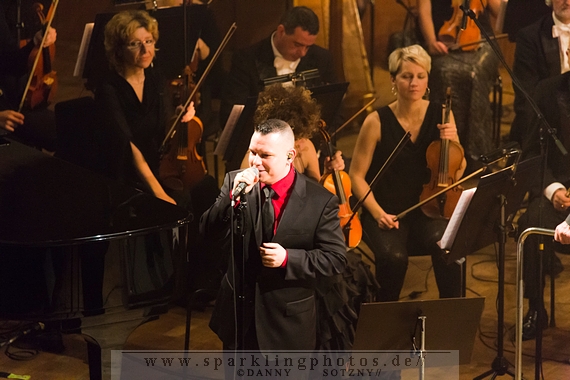 Nach dem Applaus begrüßte Dennis Schober das Publikum mit den Worten: „Habt Spaß! Genießt es!“ Bei den ersten beiden Liedern The Edge of Life und Immortal merkte man die Nervosität noch an, was aber den Applaus nach der Performance nicht beeinträchtige. Das Publikum war von dem Auftritt und seiner wirklich guten Stimme fasziniert und spätestens ab dem dritten Lied waren die Zuhörer gefesselt von dem perfekten Zusammenspiel zwischen Stimme und Orchester. Bei den letzten beiden Liedern Epiphany und Stars war die anfängliche Anspannung komplett verflogen und das Publikum erlebte einen musikalischen Hochgenuss. Nach guten 45 min war der Auftritt dann auch schon vorbei und für Sänger Dennis Schober war “ein Traum in Erfüllung” gegangen, zumal er bei den letzten beiden Gothic-meets-Klassik-Veranstaltungen immer als Zuschauer dabei war. Nun stand er selbst auf dieser Bühne mit dem großartigen Orchester, wie er erzählte. Er bedankte sich beim Orchester, bei Conrad Oleak (Pianist), bei seinen Bandkollegen, seiner Familie und natürlich bei seinen Fans, die ihm mit Standing Ovations und minutenlangem Applaus für diesen Auftritt dankten.