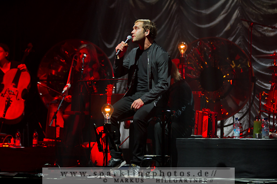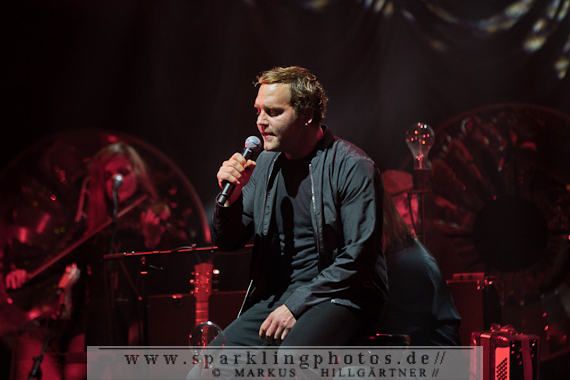 Um kurz nach 20 Uhr begann schließlich das Konzert, zunächst betrat die Band die Bühne gefolgt von Bosse selbst; er setzte sich auf einen Hocker in der Bühnenmitte und nachdem nichts weiter als eine kleine Lampe gleich neben ihm zu leuchten begann, setzte die Band zu 3 Millionen an. Gespannt lauschte das Kölner Publikum den ersten Akustikklängen und konnte sich sofort von dem grandios abgemischten Live-Sound überzeugen. Zum ersten Chorus von 3 Millionen gab es den nächsten „Wow“ Moment, als die Lichttechniker der Bosse-Tour zeigten, was die können. Ein perfekt harmonisch ausgeleuchtetes Bühnenbild, ergänzt durch einen Sternenhimmel aus Glühbirnen unterstrich die Wärme der präsentierten Musik. Gratulation, da wurde ein tolles Gesamtpaket geschaffen.
