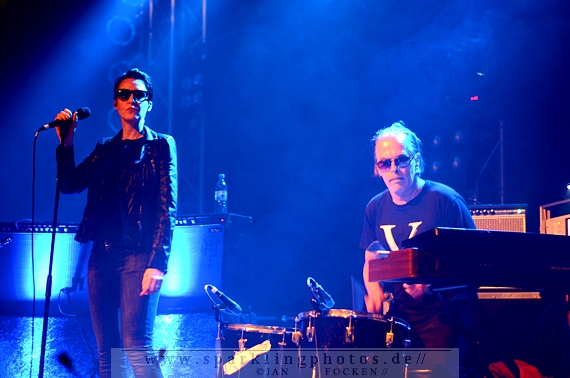 Nach der obligatorischen Umbaupause war es endlich soweit, der Meister bat zur Messe. Es hatte ja eine wichtige Veränderung in der Band gegeben, Boas langjährige Bühnen- und zeitweilige Lebenspartnerin Pia Lund hatte sich aus der Band verabschiedet, da sie ein Leben auf Tour nicht mehr für altersgerecht hielt. Stattdessen stand nun also Pris, nicht neben, aber schräg hinter Herrn Boa auf der Bühne. Und es ging direkt richtig los, mit Kill the Future vom neuen Album. Das Schönste an Phillip Boa ist ja das große Selbstbewusstsein, die Selbstverständlichkeit, mit der er alte und neue Songs in seinem Set mischt. Während viele Musiker ja gerne ihr neues Material vorstellen möchten, auf das sie ja so unglaublich stolz sind und dabei dann gerne auf die Hits verzichten, die man ja schon so oft gehört und gespielt hat, ist sich Phillip Boa seines imposanten Back-Katalogs bewusst und gibt der anwesenden Familie, was sie braucht.