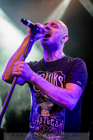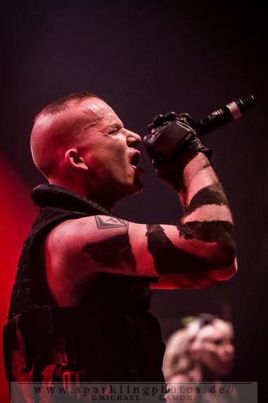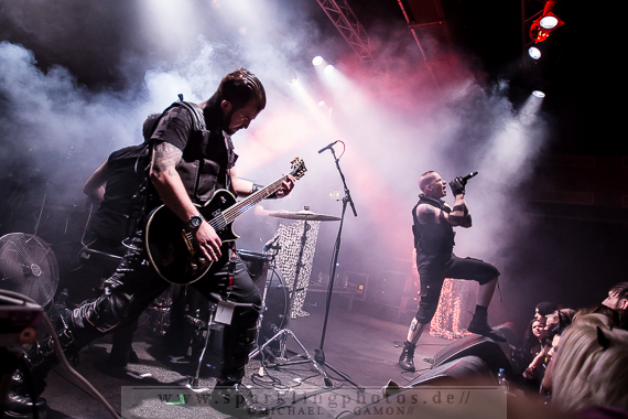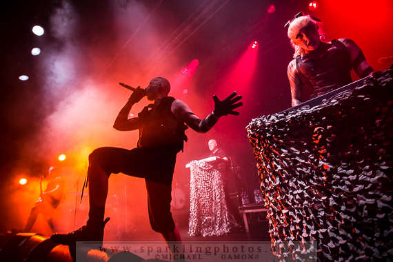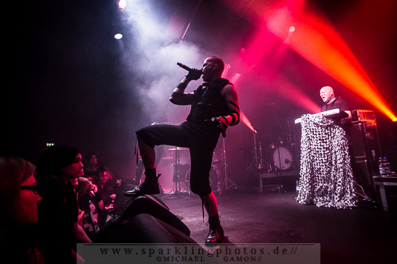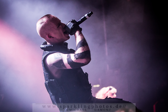 Band dann doch noch einmal zurück, um für Pluswelt Chef Jan Winterfeld ein Ständchen zu bringen: Das Fine Young Cannibals Cover You Drive Me Crazy (!). Den Hauptact des Abends muss man wirklich nicht vorstellen: Combichrist [GALLERY], mit der charismatischen Galionsfigur Andy LaPlegua. Mit viel Bühnennebel und dem orchestralen Intro (vom letztjährigen Gothic Meets Klassik in Leipzig) auf dunkler Bühne wuchs die Spannung auf den Hauptact des Abends und ließ die Erwartung auf eine geniale Show ins Unermessliche ansteigen. Bereits bei der Textzeile „Come hear the voices in my head“ des Stückes Blut Royale verwandelte sich Krefeld in einen Hexenkessel, aus dem es keinen Ausweg mehr gab. Denn es herrschte allerorts pure Energie und nordischer Charme, sei es bei This Is My Rifle oder Never Surrender: Andy machte einfach alle an und brachte sogar einige Electroheads dazu, mehr oder minder gekonnte Stagediving Einlagen zu präsentieren. Bei Shut Up And Swallow wurden zwei Mädels aus Publikum gezogen, um auf der Bühne abzufeiern. Und diese taten das, als wäre es das Normalste der Welt. Die Norweger gingen bei ihrer Songauswahl auf Nummer sicher, denn es wurde ein Hit nach dem anderen abgefeuert. Evergreens wie Get Your Body Beat und Fuck This Shit sind einfach Songs mit Abfeiergarantie. Während What The Fuck Is Wrong With You stellte Drummer Joe Letz seine Floortom auf die Hände der Combichrist-Followers, um dann gekonnt auf das Trommelfell einzuhämmern. Im Nu war der Budenzauber vorbei, aber die Band verließ nicht lange die Bühne, denn nach einer Danksagung LaPleguas und Genesungswünschen für den erkrankten Gitarristen Eric 13 schmetterten die Jungs die Zugabe This Shit Will Fuck You Up in den aufgeheizten Raum. Ein gelungenes Finale des ersten Festivaltages.
