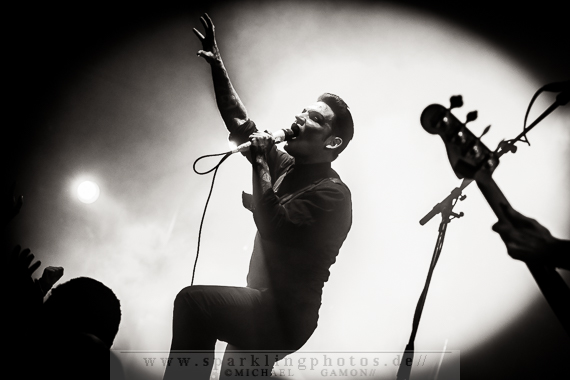 Der sichtlich gut gelaunte Frontmann Daniel Graves der amerikanischen Combo Aesthetic Perfection [GALLERY] war im Anschluss an der Reihe, die Fans zu begeistern und das war eine einfache Aufgabe. Denn die Zuschauer waren nun so aufgeheizt, dass sie gar nicht anders konnten, als abzufeiern. Die lange Reise aus den USA hatte das Trio also nicht umsonst gemacht. Die Band, die schon zuvor im Vorprogramm von Combichrist und vielen anderen zu erleben war, verwöhnte mit ihrem Electro-Aggrosound die Besucher und das Dauergrinsen von Daniel aufgrund der gut aufgelegten Fans übertrug sich spielend auf eben diese. Musikalische Highlights der Show waren The New Black und Antibody, dessen grooviger Rhythmus zum Mitschwofen einlud. Nach gefühlten 10 Minuten war das Konzert dann bereits zu Ende. Überraschenderweise kam die