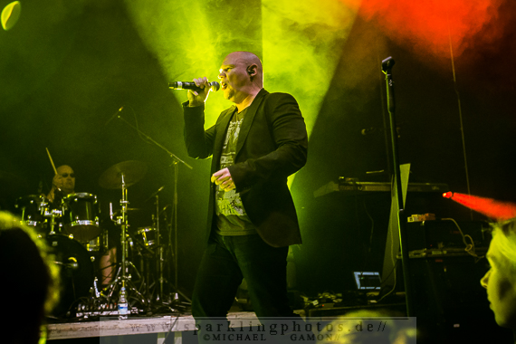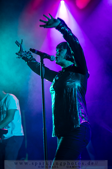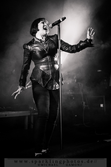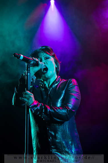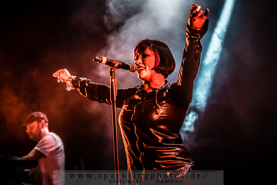 Die folgende Band hatte dann das Vergnügen, das erste wirkliche Highlight des Konzertabends zu präsentieren: die britische Band Republica [GALLERY], die in den 90er Jahren beachtliche Erfolge feiern konnte und nun in Krefeld mit großer Spiellaune zeigen konnte, dass sie immer noch gut zum Abrocken sind. Die immense Energie, die Sängerin Saffron ausstrahlte, die rockig-punkige Britpower und die rotzige Performance ging so nach vorn, dass man wie gebannt auf die Bühne schaute, um nur nichts zu verpassen. Drop Dead Gorgious brachte Erinnerungen an eine schöne Zeit zurück und German Accent war einfach ein genialer Song zum Mitmachen. Doch Republica hatten ihr Pulver noch lange nicht verschossen. Christiana Obey mit seinen 90er Jahre Synthsounds á la Underworld erzeugte ein wohliges Gefühl in der Magengegend. So sympathisch und natürlich wie Saffron kam an diesem Abend kaum ein Künstler rüber, der man anmerken konnte, wie glücklich und dankbar sie war in Krefeld spielen zu können. Beim Überhit Ready To Go war gar kein Halten mehr, denn die ganze Halle feierte den Song und dessen Interpreten so richtig ab.