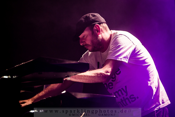 Hatten am gestrigen Freitag Bands wie Combichrist, Aestethic Perfection und Grendel eher härtere Töne angestimmt, sollten nun Fans der poppigeren elektronischen Musik auf ihre Kosten kommen. In der ausverkauften Kulturfabrik Krefeld waren sage und schreibe sechs Bands angereist, um für einen musikalischen Augenschmaus zu sorgen. Kraftwerk ließen grüßen, als die drei Musiker von Substaat [GALLERY] mit schwarzem Hemd und Krawatte auf der Bühne erschienen um ihren tanzbaren Synthpop mit EBM-Einschlag zu spielen. Stücke wie Catch Me vom ersten Album und Electric ließen die Herzen der Popfans höher schlagen und die Band aus Oslo zeigte eine souveräne Präsentation ihrer Musik. Ungleich härter ging es dann mit Blitzmaschine [GALLERY] weiter. Die Band aus Hamburg, bestehend aus Holger und Matze plus Livedrummer, macht Musik im Stile von DAF, Nitzer Ebb oder Front 242 und schämt sich dessen nicht, sondern servierte diese Mischung selbstbewusst dem Publikum. Stücke wie Burnout (mit der Textzeile „Ist das noch Deutschland?“) oder Liebe auf dem ersten Blick (dessen Stilmix man mit „DAF meets And One“ beschreiben könnte) wurden gut von den Zuschauern aufgenommen und mit Applaus gewürdigt. Die Worte „Here is something wrong“ des Tracks Useless waren Programm, denn der Drummer