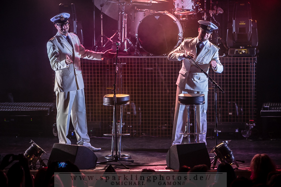 Besonders war schon einmal das Aufwärmprogramm, denn keine reguläre Vorband war gebucht, sondern das Projekt Jürgen & Ich, das natürlich aus Alexander Wesselsky und seinem Gitarristen Jürgen Plangger bestand und die, dem Event entsprechend, in Kapitänsuniformen erschienen. Die beiden unterhielten mit einigen lustigen Geschichten, viel Klamauk und Coverversionen bekannter Schlagerhits und mehr. So ganz auf andere Bands wollte man aber wohl auch nicht verzichten und so gesellten sich Chris Harms und Bo Six von Lord Of The Lost zur Unterstützung zu ihnen.