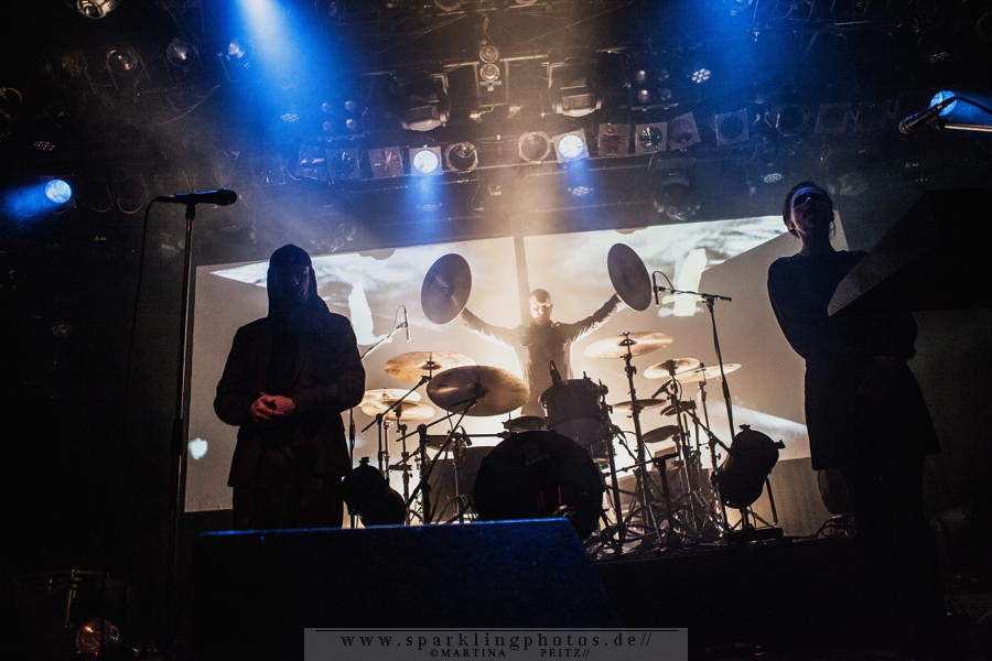 Die Zeche Bochum ist gut besucht, selbst nach über 30 Jahren ziehen Laibach ihre Fans noch immer magnetisch an. Ein Blick durch die Reihen lässt erahnen, dass einige der Besucher die Geschichte der Band ebenfalls schon lange verfolgen. Dazwischen befindet sich auch die jüngere Generation, die sich der Vergangenheit anschließt. Als sich die Halle verdunkelt wird es still im Publikum. Aus den Lautsprechern kriechen elektronische Töne, die zuerst die beiden Keyboarder auf die Bühne begleiten. Die Klänge ziehen sich gespenstisch in die Länge bis auch der Drummer und die Hauptakteure der Band Mina Spiler und Milan Fras erscheinen.