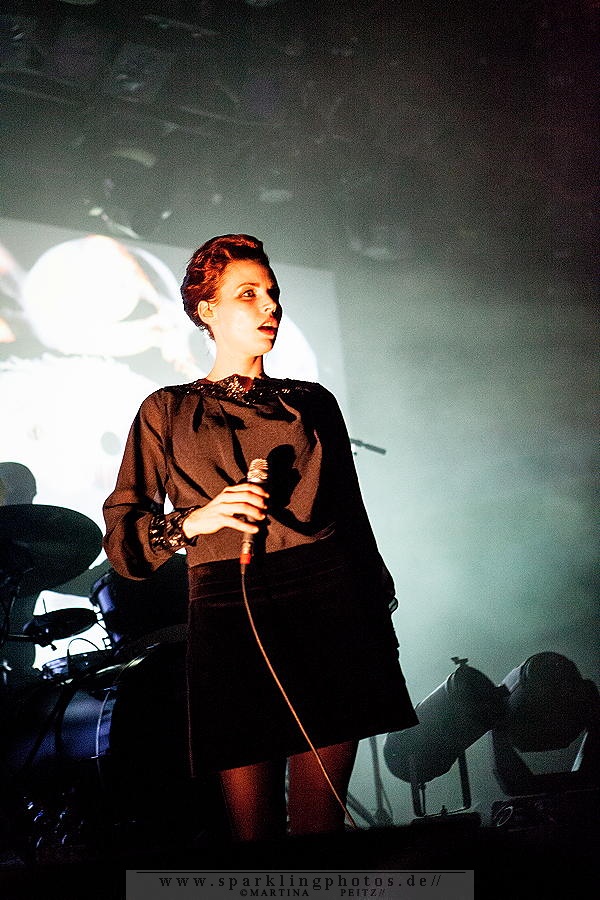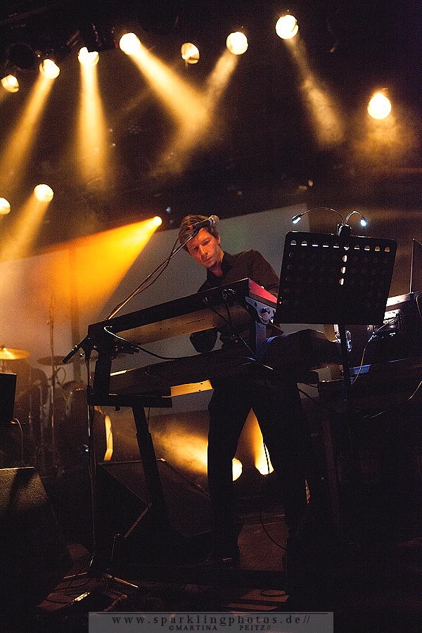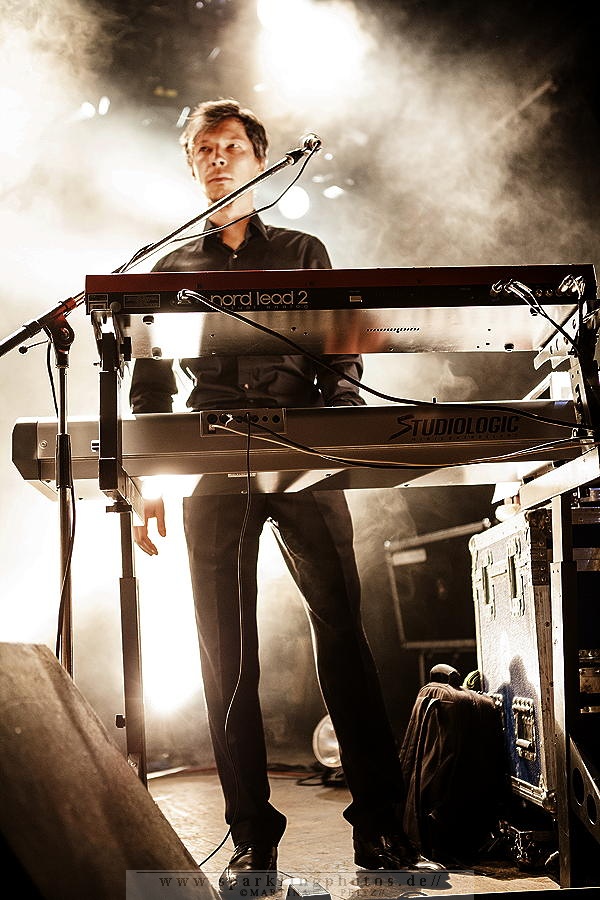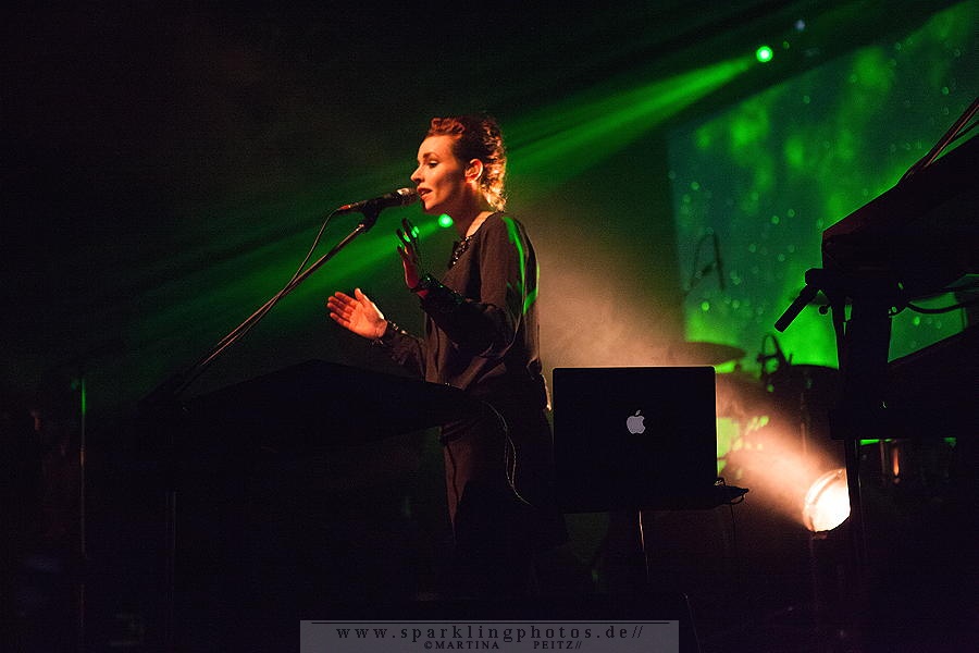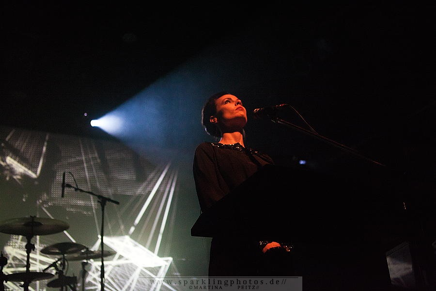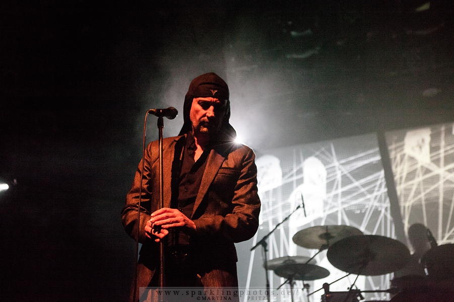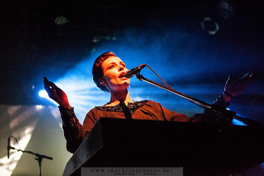 Die erste Hälfte des Konzertes ist verhältnismäßig ruhig, so wie Milan Fras, der häufig einen Schritt hinter dem Mikro steht, um der weiblichen Kollegin stimmlich Vorrang zu lassen. LAIBACH - Bochum, Zeche (15.02.2015)Wenn es erforderlich ist, übernimmt Fras den Gesang oder die Worte werden im Zwiegesang auf die Melodien gesetzt.
