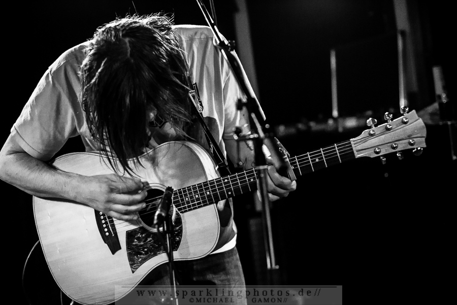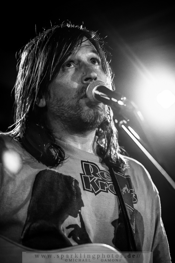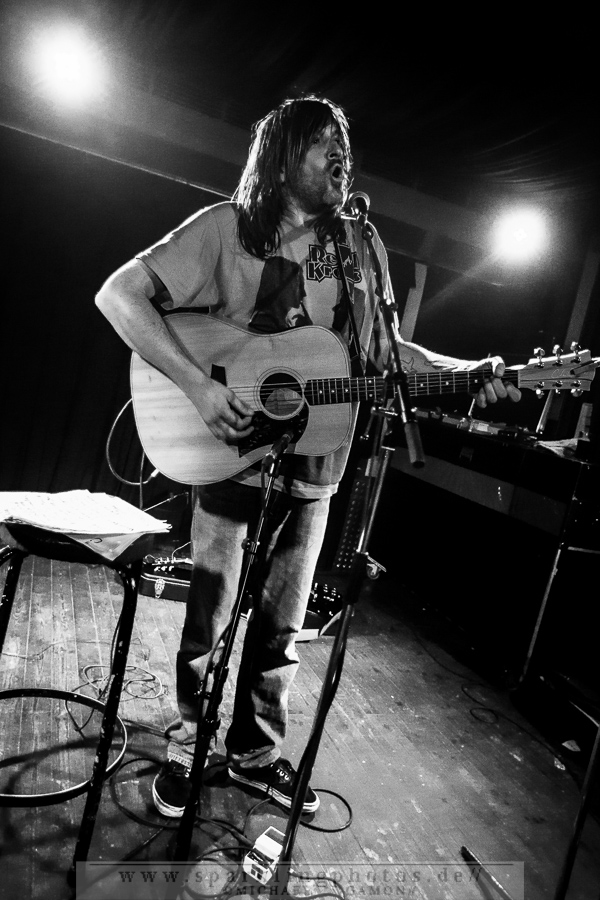 An anderer Stelle wurde gerade dieses Spontane, das Ungeplante, Chaotische, kritisiert. Evan Dando hatte keinen Plan, hieß es dort. Dem möchte ich vehement widersprechen: Evan betrat die Bühne mit einer Setlist, doch dann folgte er seinem Masterplan, das Publikum und sich selbst möglichst gut zu unterhalten. Es war schön zu sehen, wie immer wieder der Schalk in seinen Augen aufblitzte, bevor er wieder etwas besonders Unerwartetes anstimmte, oder nachdem er ein Solo einfach mal gesummt statt gespielt hatte. Evan spielte was ihm in den Sinn kam. So konnte es passieren, dass er einen Song begann, sofort wieder aufhörte, ein kurzes „Oh, I know what´s next…“ und dann den nächsten Song anstimmte. Das funktioniert nur dann, wenn das Publikum auch mit macht. An diesem Abend war Evan Dando ganz bei seinem Publikum, er reagierte auf Zurufe, er sprach mit den Gästen, er scherzte und es fühlte sich an, wie eines dieser Konzerte in den 60ern, in einem kleinen New Yorker Club, von denen man in den Biographien der Großen immer mal wieder liest. Kein YouTube-Video kann vermitteln, wie sich solch ein Konzert anfühlt, wieviel Spaß es macht, warum man trotz Müdigkeit nicht mal auf die Idee kommt, früher zu fahren… Man weiß halt einfach nicht, was man verpasst, es kann alles passieren und das macht es so besonders. It´s a shame about Ray wurde (natürlich) vom Publikum gesungen, mein ewiger Favorit von Come on feel… The Lemonheads, das wunderschöne It´s about time beinhaltet nicht nur die Überschrift, sondern auch die tolle Zeile …it´s not about… sunshine…, auch eine dieser Stellen, die das Publikum als Chor beisteuert und die Evan sogleich selbstironisch als seine eigene dumme Idee kommentierte, Mallo Cup aus Lick-Zeiten, einfach zu viele tolle Songs in den 100 Minuten Konzert…