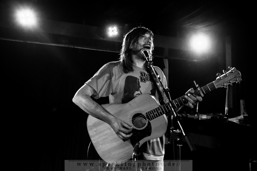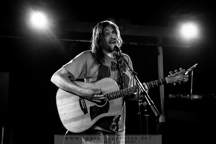 Nach einer guten halben Stunde gab Sara dann auf und überließ fast nahtlos die Bühne dem verkappten Genie Evan Dando. Eine Umbaupause war nicht nötig, denn auch er brauchte nicht viel mehr als ein Mikro und eine Gitarre. Jeans, ein altes T-Shirt, unrasiert, lange, zottelige Haare, seine äußere Erscheinung passte schon mal zum spärlichen Setting. Und dann geschah das, was ich so nicht erwartet hatte: Evan begann seinen ersten Song und das Publikum hing an seinen Lippen… „This is the town I’m living in, This is the street I’m walking down, These are the friends I’m visiting, These are the clothes I’m wearing now, This is the house I’m building here, This is the girl I’m marrying, This is the chord I’m strumming now, This is the faith I’m leaning on…”. Was für ein Anfang, was für ein Song, um den Abend zu beginnen, kaum einer, der nicht leise mitsang. Evans Unabhängigkeitserklärung, sein Mission Statement, hier bin ich, das bin ich!