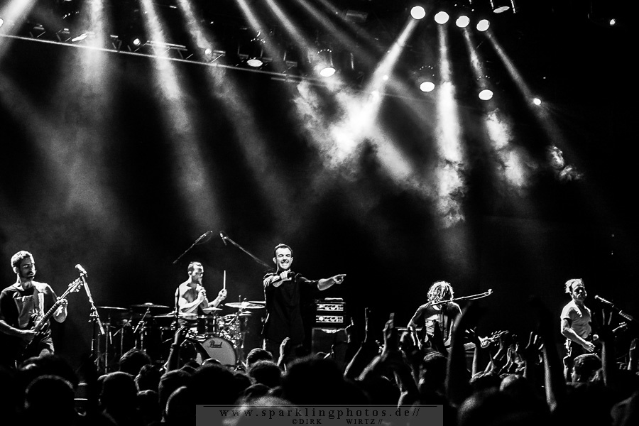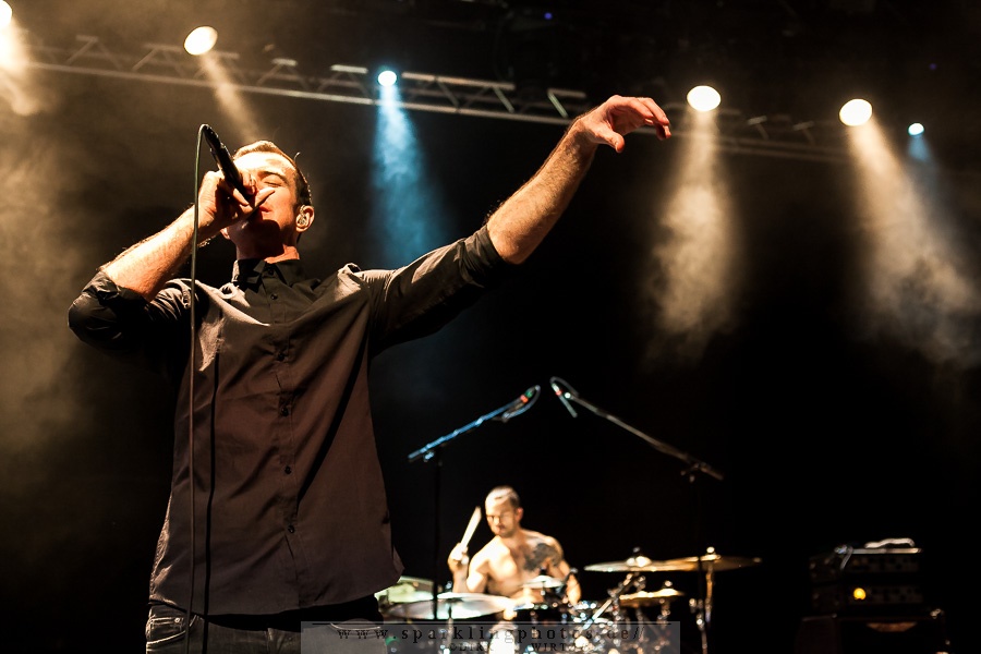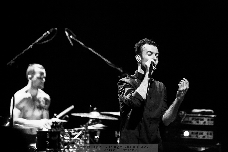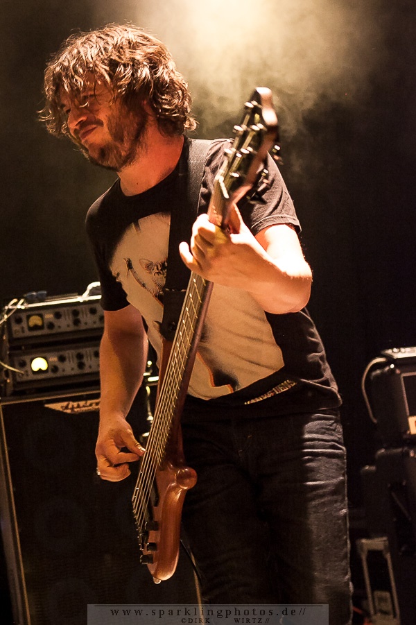 Gut, besser, Karnivool. Über diese Steigerungsform kann man diskutieren, aber über die bestens ausgesteuerte Anlage des FZW lief Karnivool zur Bestform auf. In drei Abschnitte geteilt gab die Band der Reihe nach die Songs der drei Alben Themata, Sound Awake und Asymmetry zum Besten. Das ruhige C.O.T.E zu Anfang lässt spätestens beim Refrain „…have you heard? It’s a silent dream“ den ersten Erpelparka entstehen. Stimmlich ist Ian Kenny unglaublich gut drauf. Gerade in den ruhigen Passagen nahezu sensationell, aber auch in den schier unendlichen Strophen, in denen er hoch oben aus dem Kehlkopf seine Refrains schmettert. Einfach unvergleichlich. Zwischenzeitlich merkt Ian Kenny an, dass der letzte Auftritt im FZW noch im kleinen Nebenraum stattfand. So schnell ändern sich die Zeiten. Gute Musik füllt große Hallen, und die werden in absehbarer Zeit noch größer werden. Nach 4 Liedern aus Themata wandert man rüber zum Sound Awake-Album, vermutlich der Einstieg vieler Fans in die Karnivool-Welt, um hier mit All I Know und New Day zwei der absolut bekanntesten Hits vorzubringen. Das für Karnivool-Verhältnisse recht zurückhaltende Publikum geht spätestens hier sehr gut mit. Zwischendrin muss als Highlight auch noch Deadman erwähnt werden. Diesen Song live zu erleben, ist aufgrund dessen Komplexität etwas ganz besonderes. Steve Judd an den Drums und die beiden Gitarren (Mark Hosking & Drew Goddard) spielen hier teilweise so unglaublich disharmonisch und doch perfekt passend miteinander, wie es schöner kaum sein könnte. Dazu klopft das „…I needed to know“ von Ian Kenny erbarmungslos aber genial an die Hirnrinde. Auch die fantastische Bassline von John Stockman darf nicht unerwähnt bleiben. Fans der progressiven alternativen Musik kommen hier voll auf ihre Kosten. Vielleicht auch ein Grund, warum im Publikum viele Steven Wilson- und Procupine Tree-Shirts zu sehen sind? Schlussendlich und als 3-Song lange Zugabe geht es zum aktuellen Album Asymmetry, wo es mit We Are und The Refusal nochmal sehr krachig zur Sache geht, um dann mit dem unvergleichlichen Aeons einen Schlussstrich unter einen fantastischen Gig zu setzen. „…Chemical fires will signal we’re dead and gone“ schallt der Refrain Aeons dann nochmal aus vielen Kehlen eines zufriedenen Dortmunder Publikums.