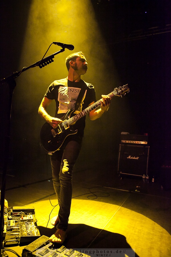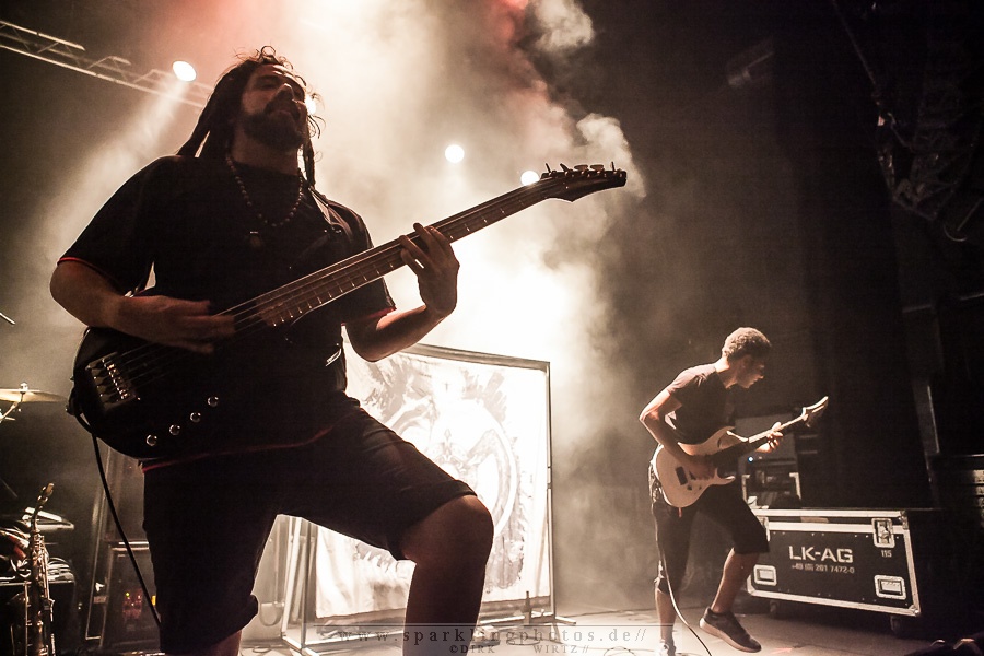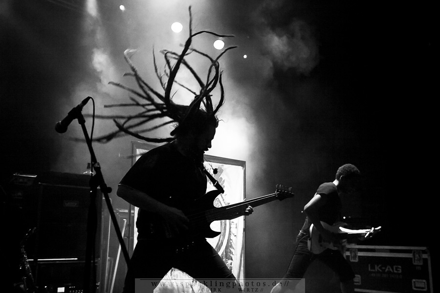 Den Startschuss im sehr gut besuchten Dortmunder FZW gaben Monuments. Die mit einer gehörigen Portion Math-Core ausgestatteten Progressiv-Metaller aus der britischen Hauptstadt zeichnen sich durch extrem komplexes Songwriting aus. Der versierte Fan braucht ein paar Umdrehungen im CD-Player, um die Musik zu verstehen. Spielerisch auf jeden Fall ein großes Ding, einige Passagen fallen da schnell unter „wie kann der das spielen“, denn mind-banding und fingerbrechende Gitarren-Riffs lassen das Publikum staunen. Ehrlicherweise muss man aber auch festhalten, dass viele der Karnivool-Fans mit der Musik der jungen Briten ein wenig überfordert waren, andererseits waren aber auch einige Leute extra der Band wegen gekommen. Bei mehreren Songs war richtig Bewegung in den vorderen Reihen und auch ein „setzt euch alle hin und springt gemeinsam mit mir hoch“-Aufruf des Sängers Chris Barretto wurde artig und wohlwollend befolgt. Grundsätzlich ist die Band eine Bereicherung der Metal-Szene und war sehr sehenswert.