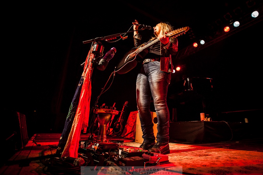 1.000 Besucher, die nicht nur dankbar dafür sind, ihre Künstlerin zu sehen, sondern auch eine Künstlerin, die dankbar ist, dass so viele gekommen sind. Ganz ungekünstelt steht sie da, ohne eine Band – diese stellt sie gewissermaßen an diesem Abend selbst, indem sie ihre Klänge aufnimmt, loopt und so einen vielschichtigen Sound herstellt. Pünktlich um 20 Uhr eröffnet sie mit Ain’t It Heavy einen Abend, in dem sie über zwei Stunden bestens mit ihrer Musik unterhält, sich aber auch zwischen den Stücken immer wieder Sympathien erspielt.