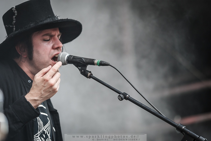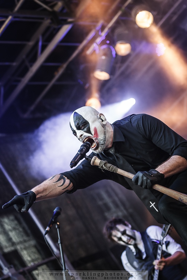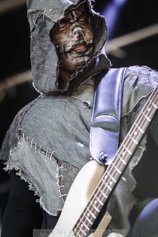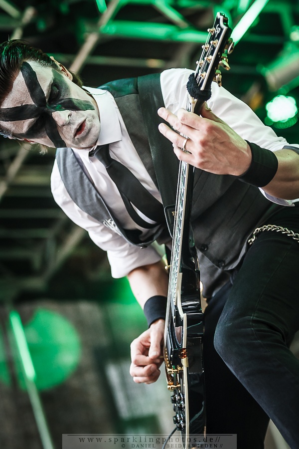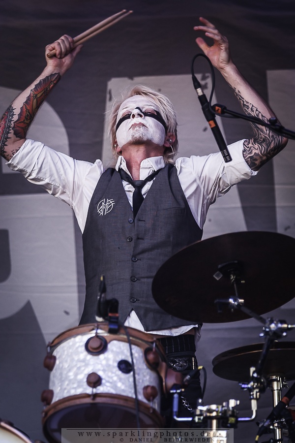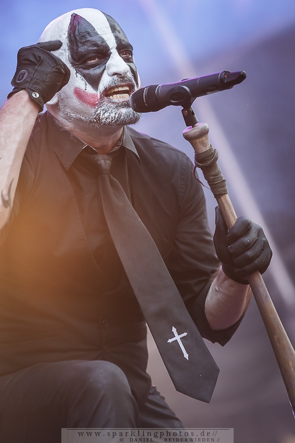 Mit Staubkind [GALLERY] um 18:55 Uhr kündigt sich einer der Highlights des Tages an. Nicht, dass man es nicht schon vorher an den zahlreich getragenen Bandshirts hätte erahnen können. Die Fans sollten nicht enttäuscht werden und dass auf äußerst kreative Art und Weise.
