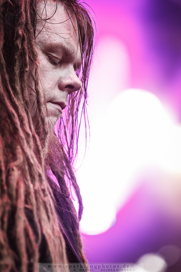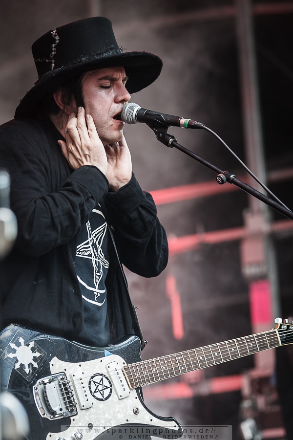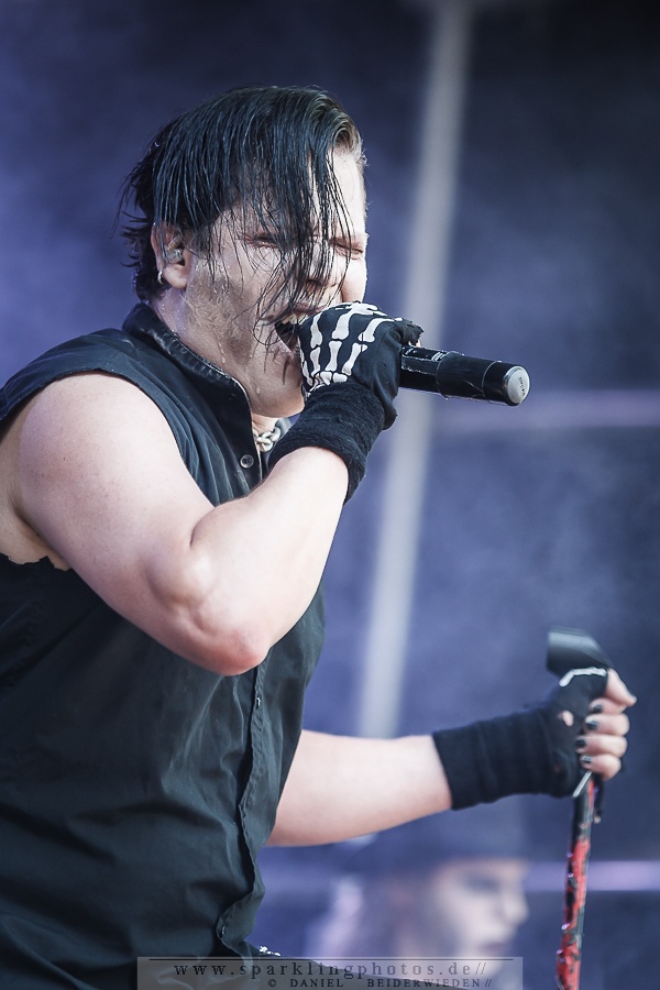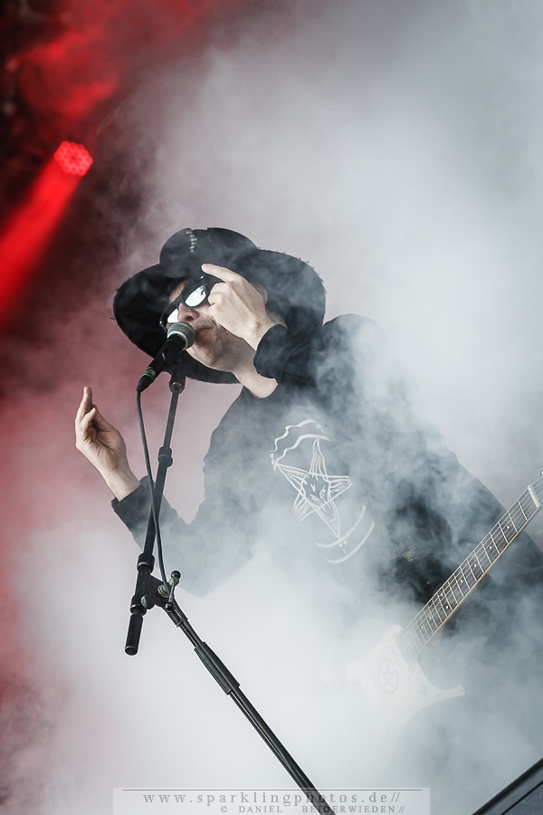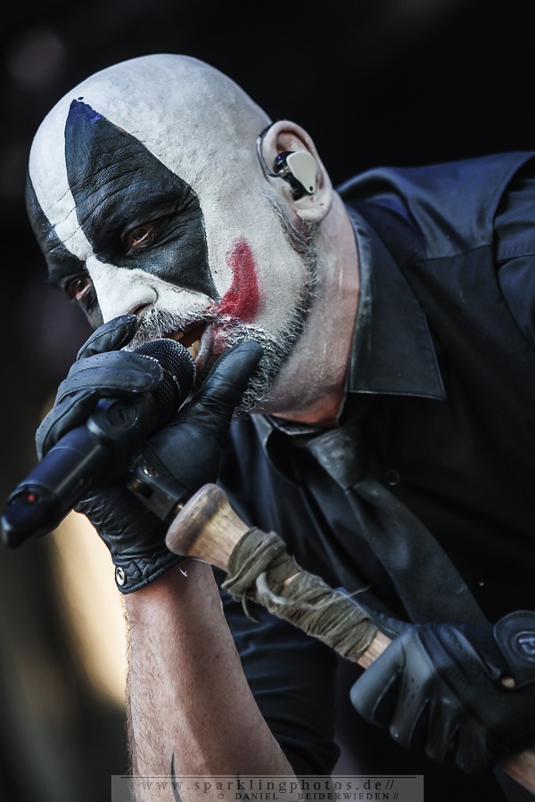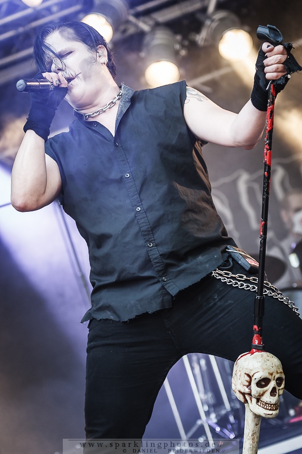Mit Staubkind [GALLERY] um 18:55 Uhr kündigt sich einer der Highlights des Tages an. Nicht, dass man es nicht schon vorher an den zahlreich getragenen Bandshirts hätte erahnen können. Die Fans sollten nicht enttäuscht werden und dass auf äußerst kreative Art und Weise.
