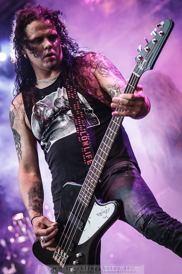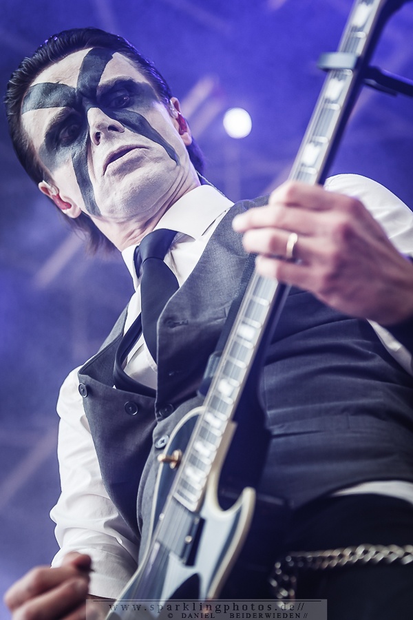 Headliner am Freitag sind Poisonblack [GALLERY] aus Finnland, ihnen gehört ab 20:45 Uhr die Bühne. Mit ihrem „Dark Rock“ gehen Sie direkt brachial nach vorne, kein großes Intro, einfach ehrlicher Rock. Der Burginnenhof füllt sich gut zur Hälfte und wenn man in die Gesichter der Festivalbesucher schaut, kann man an nicht wenigen ablesen, dass es schon ein langer und sehr sehr warmer Tag war. Die harten Gitarrenriffs kitzeln uns aber wach!! Die Musiker verstehen ihr Handwerk sichtlich gut, egal ob laut oder leise, schnell oder langsam. Es nicken die Köpfe im Takt, hier und da wird mitgesungen und es wird gejubelt und geklatscht. Der Auftritt kommt gut an und vollendet so einen tollen Auftakt ins Castle Rock 2015.