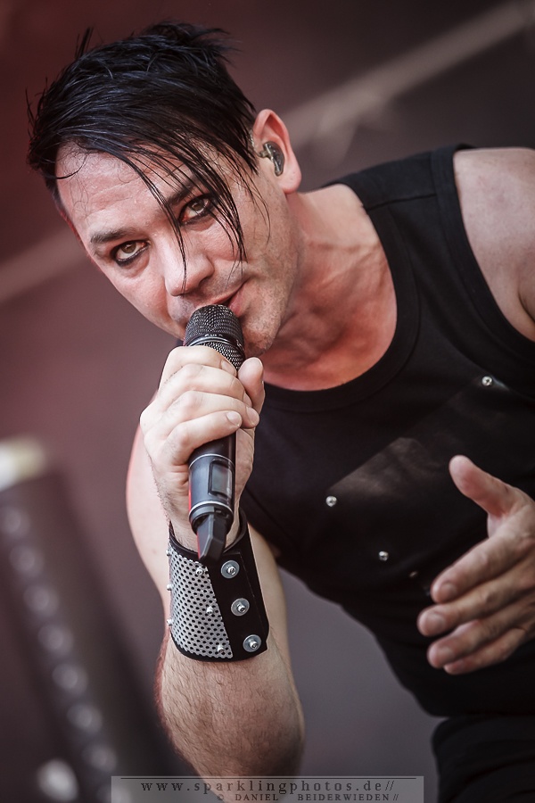 An nächster Stelle hätte es eigentlich geheißen, Bühne frei für Beloved Enemy, leider waren diese aber aus gesundheitlichen Gründen nicht mit dabei. Stattdessen haben sich kurzfristig Megaherz [GALLERY] angekündigt, die ihrerseits beste Genesungswünsche an Peter von Beloved Enemy gerichtet haben. Das Castle Rock wurde eingeladen dem Zombieland beizuwohnen. Einem düsteren, kraftvollen, lauten und faszinierenden Land, wie es schien. Es versammelten sich so viele Zuschauer vor der Bühne, wie heute noch nie zuvor und es gab mit Titeln wie Fanatisch, Blender oder Mann im Mond viel Anlass um eine gute Party zu feiern. Im Endeffekt ist der gesamte Burginnenhof voll bis hinten zum Zelt der Licht und Tontechnik. Alexander Wohnhaas und seine Recken machen ordentlich Meter auf der Bühne und liefern eine gute Show. Das Publikum kontert mit einer Menge in die Höhe gestreckter Arme, Klatschen, Jubel, Headbangen, Kopfnicken und Tanzen. Bei Gegen den Wind gibt so langsam die Schminke der Megaherz-Titanen auf, bis die aber die Bühne aufgeben, dauert es noch… und zwar bis zum abschließendem Miststück. Ein rundum gelungener Auftritt!