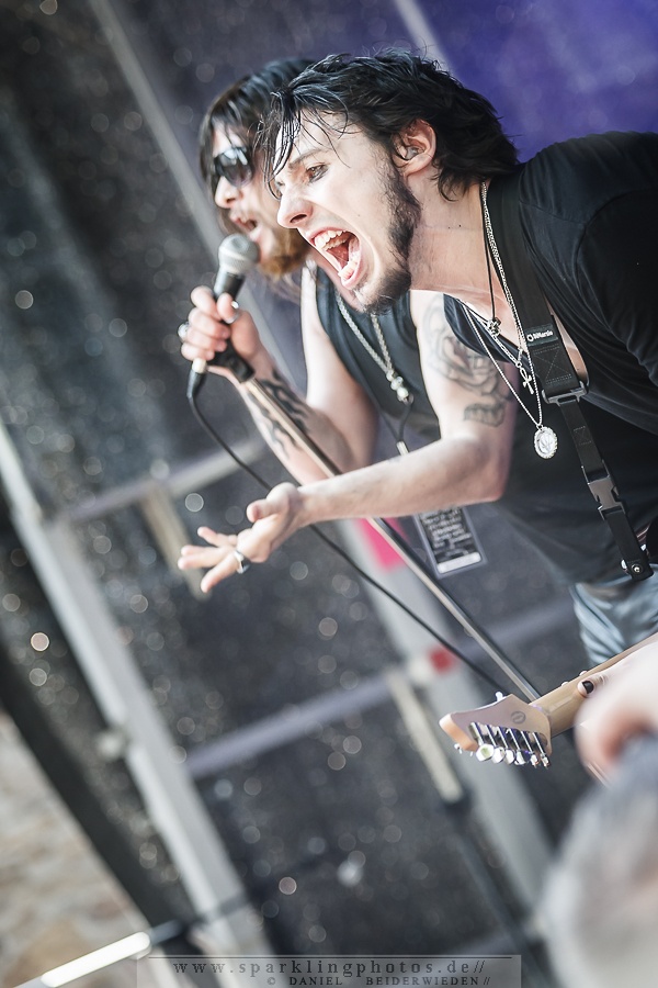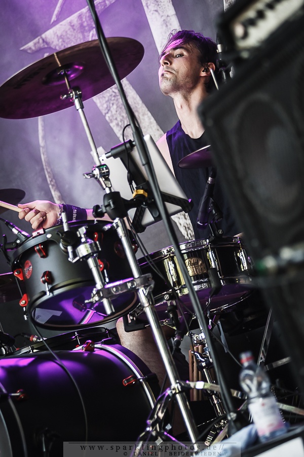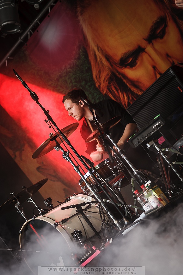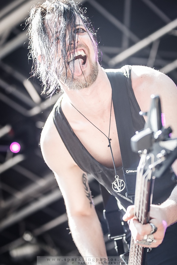 Kurz nach 14 Uhr heißt es dann "Bühne frei" für Vlad in Tears [GALLERY]! Längst keine Unbekannten mehr und sie legen die Vermutung nah, zum Frühstück den einen oder anderen Duracell-Hasen verputzt zu haben. Mit einem rasanten Tempo fegen die Jungs aus Italien über die Bühne und geben Vollgas. Die Gitarren bringen die Luft zum Vibrieren und Kris Vlad überzeugt mit seiner Stimme. Die Verlockung nach Abkühlung durch Wasser aus der Konserve lockt immer mehr Menschen wieder in die pralle Sonne zurück vor die Bühne. An dieser Stelle sei aber mal positiv erwähnt, dass man von so gut wie jeder Ecke im Innenhof einen guten Blick auf die Bühne hatte.