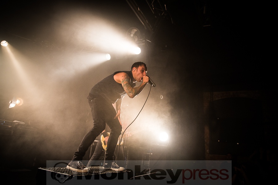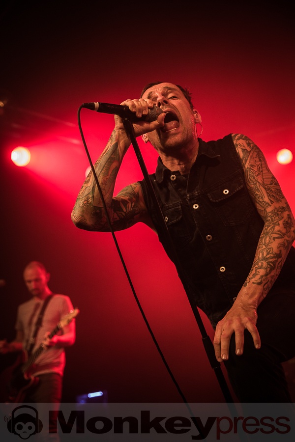 Gegen 21:00 Uhr betraten dann die Donots zu Ich mach nicht mehr mit die Bühne. Auch die Westfalen hatten zuvor überlegt die nächsten Konzerte aufgrund des Pariser Massakers zu verschieben. Aber eines machte Frontmann Ingo eingangs klar, dass wir uns durch die Attentate nicht unsere Lebensweise verbieten lassen sollten und dass die Menschen, welche Zuflucht in Deutschland suchen, genau vor diesem Terror flüchten. Passend zum Thema ging es mit dem Eurovision Song Contest Beitrag Dann ohne mich weiter. Die Menge hing vom ersten Moment an Ingos Lippen und sang fast jeden Song textsicher mit. Natürlich bestimmte der aktuelle Long Player Karacho maßgeblich das Set, aber es gab noch reichlich Platz für den einen oder anderen Hit aus über 20 Jahren Bandgeschichte. Im Hauptset ragte vor allem der Mitsingohrwurm Stop The Clocks vom 2008er Album Coma Chameleon heraus.