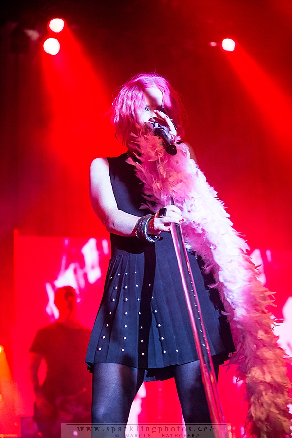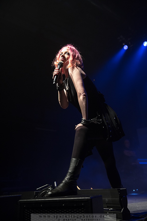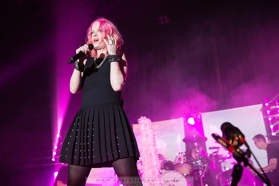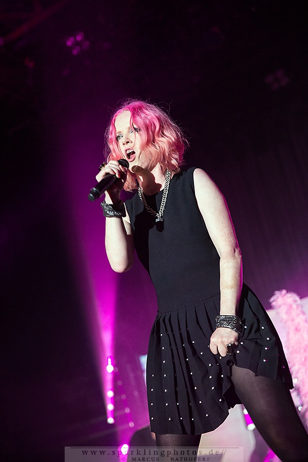 In der Umbaupause füllt sich das Palladium zusehends und zu Beginn des Gigs ist die Location bis auf die hinteren Reihen gut gefüllt. Um kurz nach 21 Uhr ist es dann soweit: Auf einem weißen Vorhang vor der Bühne wird ein Rückblick in Form von Mitschnitten und Tourvideos aus den Anfangsjahren von Garbage gezeigt. Und auch der erste Song wird hinter dem Vorhang performt. Dabei tragen die Bandmitglieder Tiermasken, so dass durch den Einsatz von Lichteffekten bizarre Gestalten auf dem Vorhang erscheinen. Mit freiem Blick auf die Bühne geht es anschließend nahtlos im Programm weiter. Nach Supervixen entsteht aufgrund von technischen Problemen eine längere Pause, welche Frontfrau Shirley Manson jedoch professionell weg redet und dem Publikum ein wenig über den Ablauf des Abends erzählt. So kann es nach einigen Minuten dann auch weitergehen und mit Queer folgt gleich eines der bekanntesten Stücke. Nach dem Stück The Butterfly Collector, zu dem die Sängerin eine sehr persönliche Geschichte zu erzählen hat, folgt Not My Idea bei dem einige Fans trotz fortgeschrittenem Alter mitspringen – Musik ist halt keine Frage des Alters. Das beweisen auch die Herren Duke Erikson (Gitarre/Keyboard), Butch Vig (Schlagzeug) und Steve Marker (Gitarre), die wie immer bei Liveauftritten Unterstützung am Bass haben. Das Hauptaugenmerk liegt wie seit jeher aber natürlich auf Sängerin Shirley Manson, die es mit einer gelassenen Selbstverständlichkeit versteht das Publikum durch den Abend zu führen. Mit zahlreichen Hits wie Milk, Stupid Girl und Only Happy When It Rains haben die Alternative Rocker aber auch keine Probleme die Menge bei Laune zu halten und so vergeht die Zeit wie im Fluge. Mit Vow verabschieden sich Garbage nach gut anderthalb Stunden von der Bühne. Als Zugabe gibt es schließlich noch vier weitere Songs und mit einem „See you next year“ darf man sich Hoffnung auf ein weiteres großartiges Konzerterlebnis im kommenden Jahr machen. Dann wohl eher mit dem neuen Material, an dem die Band derzeit arbeitet – aber ihre größten Hits werden Garbage trotz allem sicher auch dann nicht vergessen.