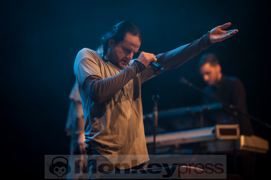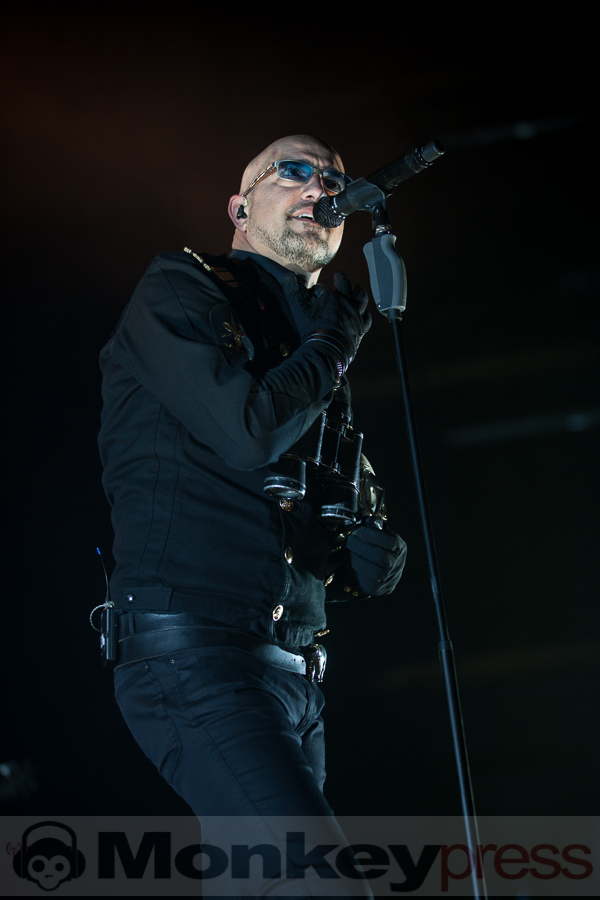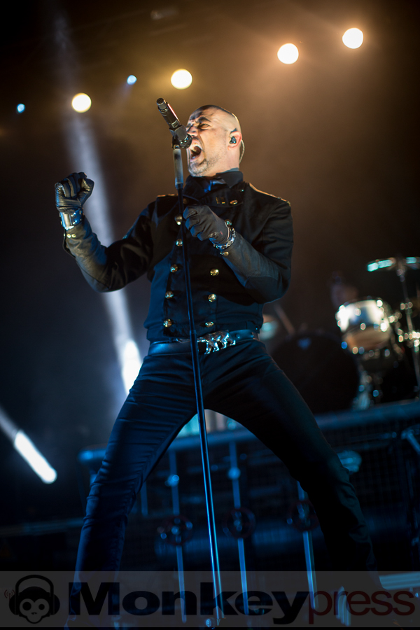 Auch für die Fans des härteren Elektro hat das Dark Storm Festival 2015 wieder etwas zu bieten. Die deutsche Elektro-Band Agonoize ist neben provokativen Texten auch für die spektakulären Bühnenshows mittlerweile legendär. Letztes Jahr erschien das neue Album Apokalypse. Dichte Nebelschwaden zogen nun über die kleine Bühne. Dicht gedrängt standen die Gäste bis in die hinteren Reihen. Sänger Chris L. trat zunächst mit geheimnisvoller Maske an ein Pult. Beim 2. Song legten Agonoize dann so richtig los. Neben harten Beats gab es auch eine ordentliche Portion Kunstblut, welches direkt auf das Publikum gespritzt wurde. Die Fans tanzten nun zu Titeln wie Glaubenskrieger, Bis das Blut gefriert und Staatsfeind. Nun wurde es im Großen Saal Zeit für Goethes Erben. Das Projekt von Oswald Henke ist den Fans der Dark Wave und Gothic-Szene seit vielen Jahren bestens bekannt. Hauptmerkmal von Goethes Erben ist der Sprechgesang. Stilistisch kamen in späteren Jahren Avantgarde- und Rockelemente dazu und auch live haben Goethes Erben viel zu bieten. Neben klassischen Streichinstrumenten gibt es Chorgesang und Tänzerinnen. Der Auftritt glich passend zum Musiktheaterkonzept Menschenstille bei vielen Songs einer Theateraufführung. Das Publikum stand nun dicht gedrängt am Bühnenrand und genoss diese einzigartige Darbietung. Zwischendurch wurden sogar Eintrittskarten für Konzerte verlost, die nächstes Jahr stattfinden werden. Headliner auf dem Dark Storm 2015 waren Eisbrecher. Im Januar des letzten Jahres veröffentlichten sie ihr 6. Studioalbum Schock. Eisbrecher vereinigen in ihrer Musik harte Gitarrensounds und klangvolle elektronische Elemente. Die Band um Alexander „Alexx“ Wesselsky hat mit diesem Konzept seit einigen Jahren eine bemerkenswerte Fangemeinde bilden können. Das konnte man auch an diesem Abend spüren. Der große Saal war nun komplett voll. Die Zuschauer warteten gespannt auf die Eisbrecher-Crew. Die Bühne war dunkel. Frontmann Alexander Wesselsky betrat die Bühne in Kapitänsuniform. Blaues und weißes Licht erstrahlte nun. Volle Kraft Voraus war der Opener, der den Saal gleich zum Kochen brachte. Eisbrecher fesselten das Publikum von Anfang an. Ganze 70 Minuten dauerte die Show. Mit vielen Ohrwürmern, krachendem Sound und viel Sympathie waren Eisbrecher dann ein würdiger Abschluss für das Festival.