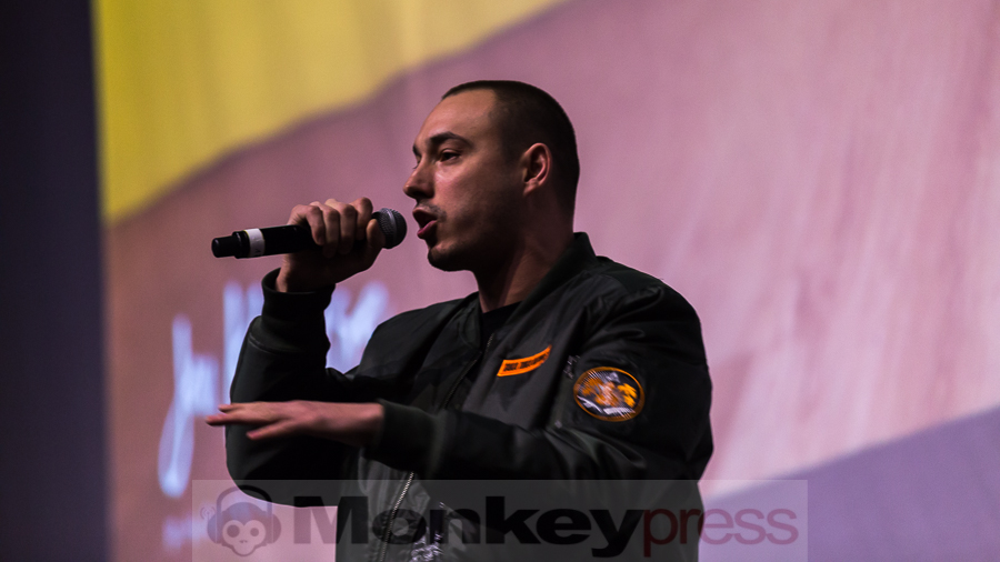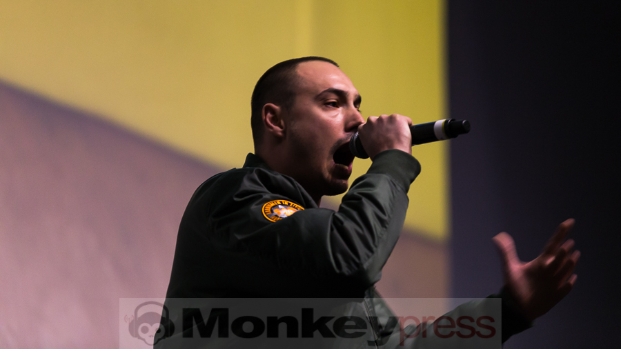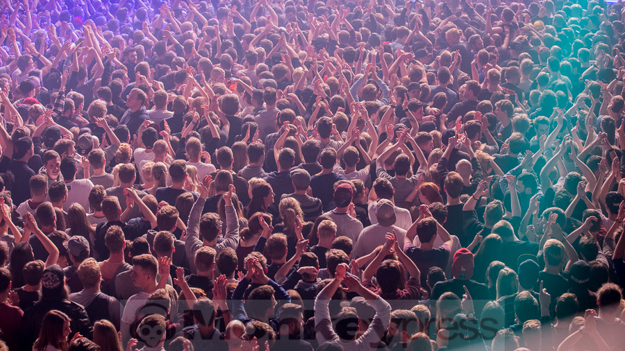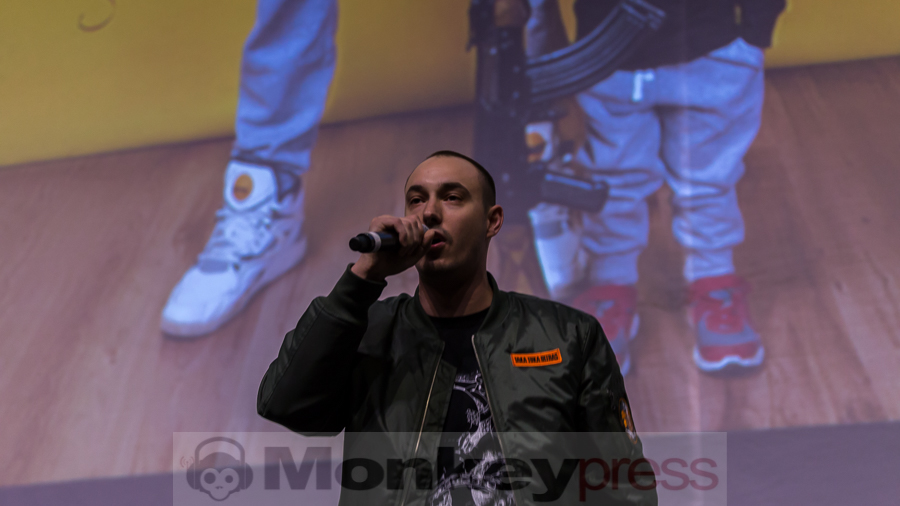 Eine kurze Umbaupause und dann wird das Video aus dem Backstageraum gezeigt, das einem, der bereits ein Konzert im vergangen Jahr besucht hat, bekannt vorkommen mag. Ehe man sich versieht stehen Nico, Tarek, Maxim und DJ Craft auf der Bühne. Bereits zu Beginn: Urlaub fürs Gehirn, ein Hit und mit Sicherheit das, was die Hälfte der hier Anwesenden nach 12 Jahre Schule braucht. Aber wie das als Schüler so ist…das Geld fehlt. Das ändern K.I.Z. mit dem nächsten Track und lassen Geld auf ihr Publikum regnen. Die Hits folgen Schlag auf Schlag und die Bielefelder erweisen sich bei den Klassikern wie Abteilungsleiter der Liebe, Spast oder Ein Affe und ein Pferd als durchaus textsicher, doch der Funke will nicht so richtig zünden. Zwar versucht es eine kleine andere Gruppe immer wieder durchs Pogen die anderen etwas zu motivieren, doch gelingt das einzig und alleine K.I.Z., als sie den Song Pogen bringen. Doch auch das hält nicht lange. Es liegt einfach nicht in der Natur der Ostwestfalen ihre Begeisterung offen nach außen zu tragen, geschweige denn es mal richtig krachen zu lassen oder komplett auszurasten, wie es bei K.I.Z. gang und gäbe ist. Aber K.I.Z. sind nicht die Ersten, die das merken, ihr nachfolgender Kommentar bei Facebook lautete dementsprechend: „War ok Bielefeld.“ Anders lässt es sich nun mal nicht beschreiben. Dabei können K.I.Z. jede Schuld von sich weisen, denn ihre Performance war überzeugend wie immer und an Zugaben wurde auch nicht gespart. Ebenso wenig wie an Luftschlangen, die u.a. bei Boom Boom Boom auf die Massen geschossen wurden.  Mit Hurensohn ging dieser Abend zu Ende, der unter dem Motto #ripwesterwelle stand. Vielleicht ergibt sich ja mal wieder die Chance, dem Trio zu zeigen, dass Bielefeld auch anders kann.