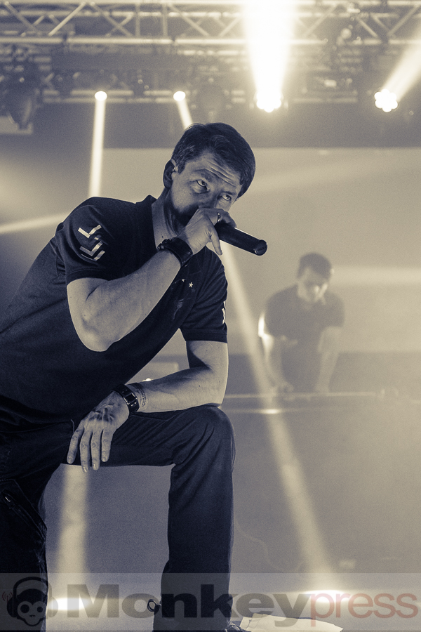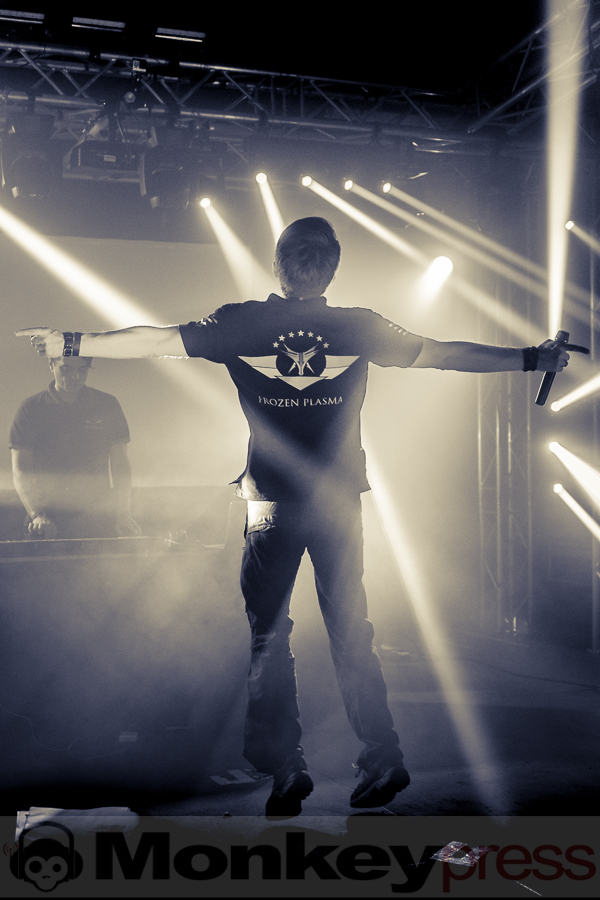 Nach einer kräftigen Tanzrunde zu Klangstabil (die übrigens nicht alle so gut fanden wie wir beide), kamen dann auch schon Felix und Vasi auf die Bühne. Vasi versuchte die komplette Umbaupause mit den Technikern die Videos zum laufen zu bekommen, aber die Technik und die Zeit waren gegen ihn. Also gab es an diesem Abend Frozen Plasma ohne die absolut zum Herzchen in den Augen bekommende Videodarbietung zu Maniac. Felix machte seinen Mix aus wilden, verrrückten Dancemoves und der eine oder andere Diorama-Fan konnte zumindest über diesen kleinen Teil ihrer Lieblingsband schmunzeln. Kein perfekter Ersatz, aber trotzdem ein Gute-Laune-Bringer!