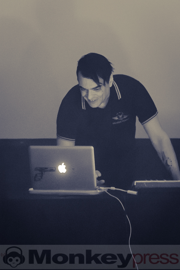 Warum wir auf ihn warten mussten? Da Frozen Plasma so kurzzeitig eingesprungen sind, gab es einige Probleme mit dem Back Up der Songs. Was tut man, wenn jemand in Not ist? Richtig! Improvisieren. Und so bot unser hinreissender Fotograf denn seinen Rechner an, um kurzzeitig noch ein Back-Up von Musik und Videos zu ziehen. Improvisation und spontan sein sind alles! Wir konnten dann in Ruhe zu Klangstabil abgehen, einem Auftritt bei dem Boris sehr emotional wurde und zwischenzeitlich abbrechen musste. Wir hätten ihn wohl am liebsten kräftig gedrückt, wären wir an ihn ran gekommen.