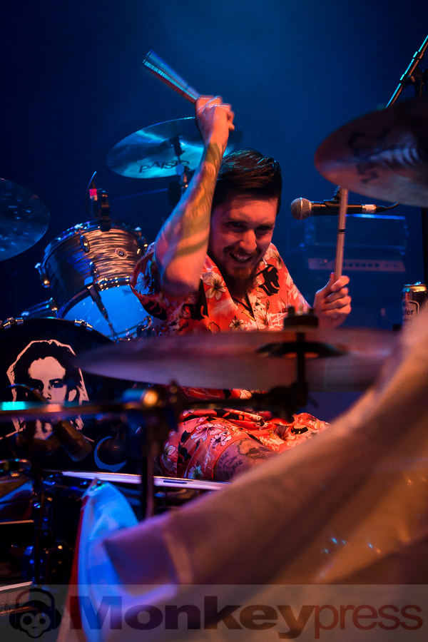Die ersten hektischen Gitarrensalven feuerten vier Londoner in Hawaiihemden unter dem Namen WACO ab. Wenn man die Jungs mit drei Worten beschreiben sollte, kämen mir spontan „laut“, „schnell“ und „belanglos“ in den Kopf, wobei sie mir letzteres vermutlich nichtmal übel nehmen würden, sortieren sie sich doch selbst dem Genre „London Party Punk“ zu. Party sei hierbei nochmal dick unterstrichen, das Publikum feierte das britische Quartett ekstatisch. Könnte allerdings auch von der Bestechung mit Dosenbier herrühren, welches der Drummer in die Menge reichte.