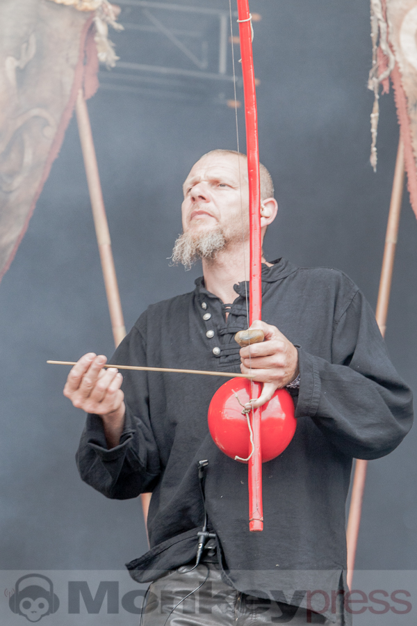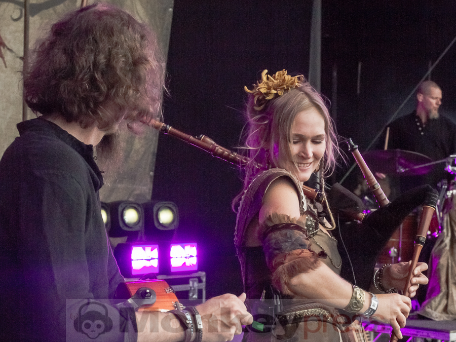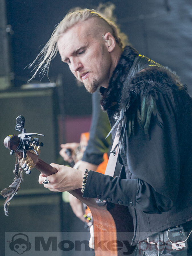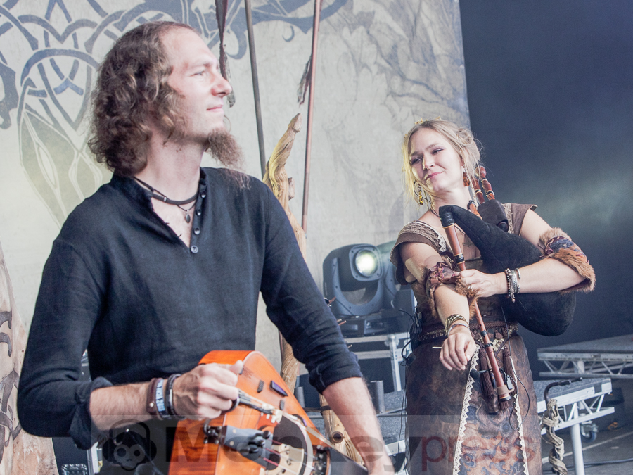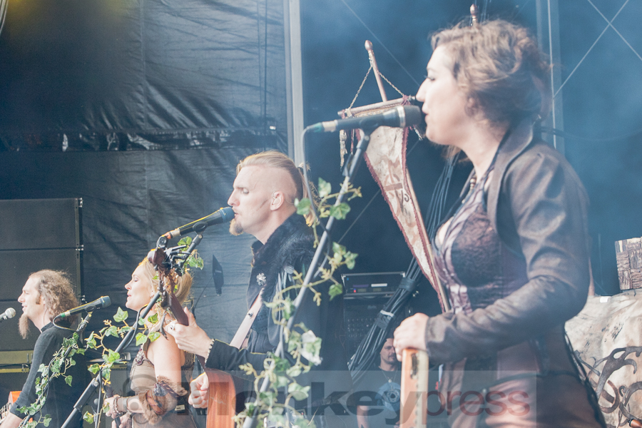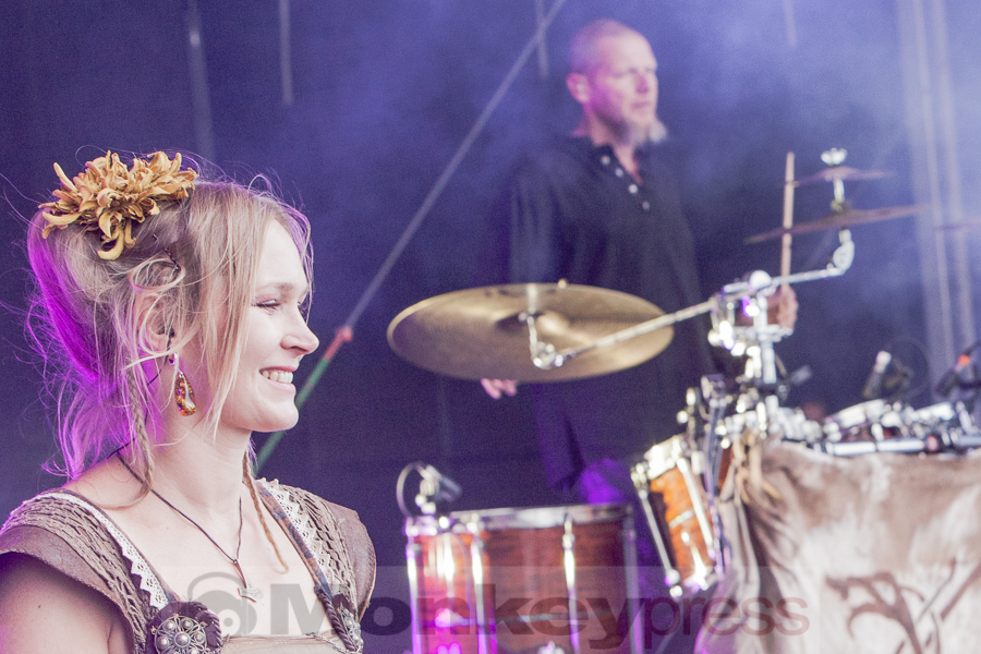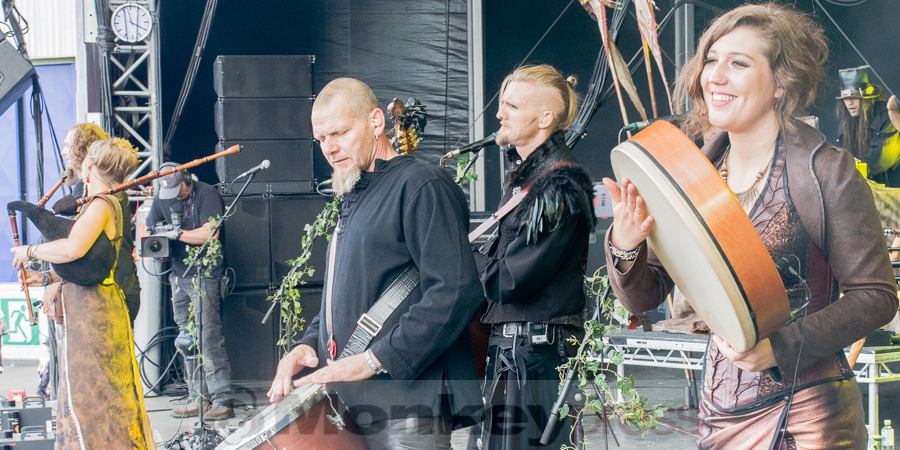 Während Elektro-Freunde weiterhin im Hangar feiern konnten – Beborn Beton waren an der Reihe – gab es draußen einen erneuten musikalischen Kontrast, denn der Pagan Folk von Faun war an der Tagesordnung. Mit allerhand mittelalterlichem Instrumentarium, wie der von Bandkopf Oliver Pade gespielten Nyckelharpa, spielte die Band vor allem bekanntes Material, gab mit der neuen Version von Alba aber auch einen Ausblick auf das Album Midgard, für das das Publikum laut Bandaussage eine Woche zu früh gekommen sei. Gut gelaunt spielte die Band ihre mittelalterlichen Melodien, was man auch in den Ansagen zu den Stücken merken konnte. Faun erzählen eben Geschichten – und haben Humor, wie beispielsweise in einer Ansage, wo es hieß „früher hat man damit Leute gequält, heute nennt man das Kunst“. Ein Highlight des Festival-Tages!