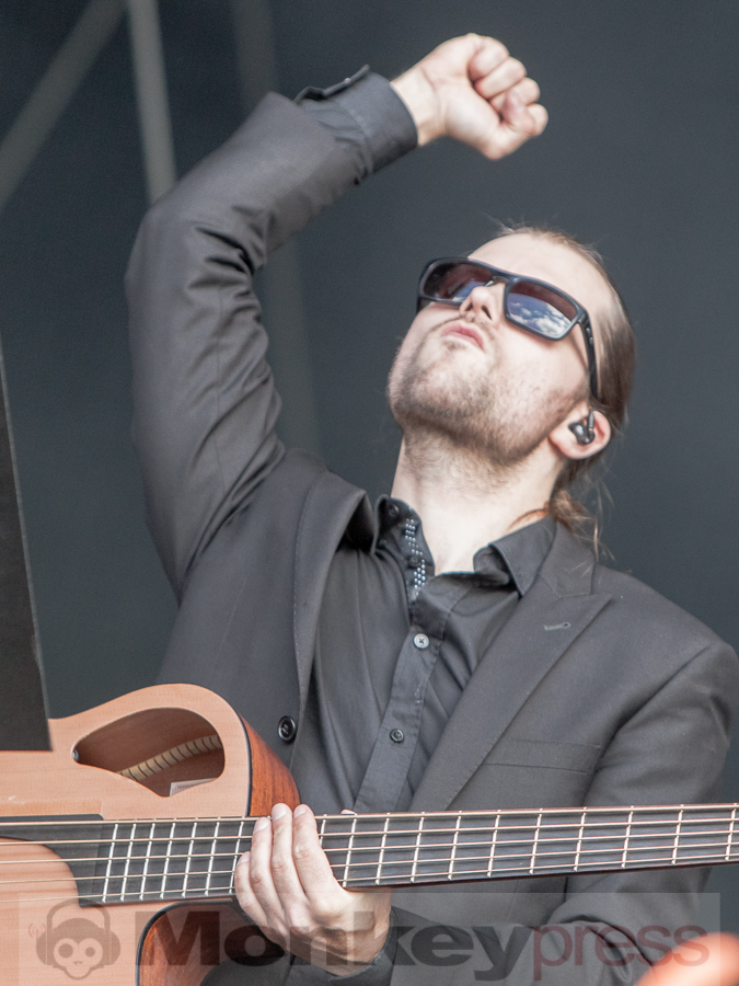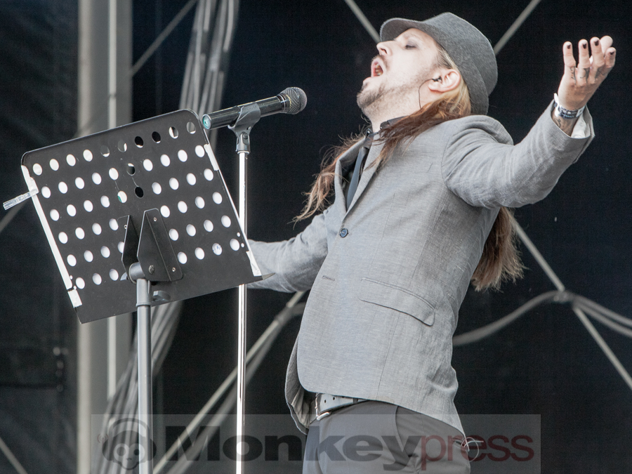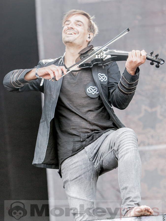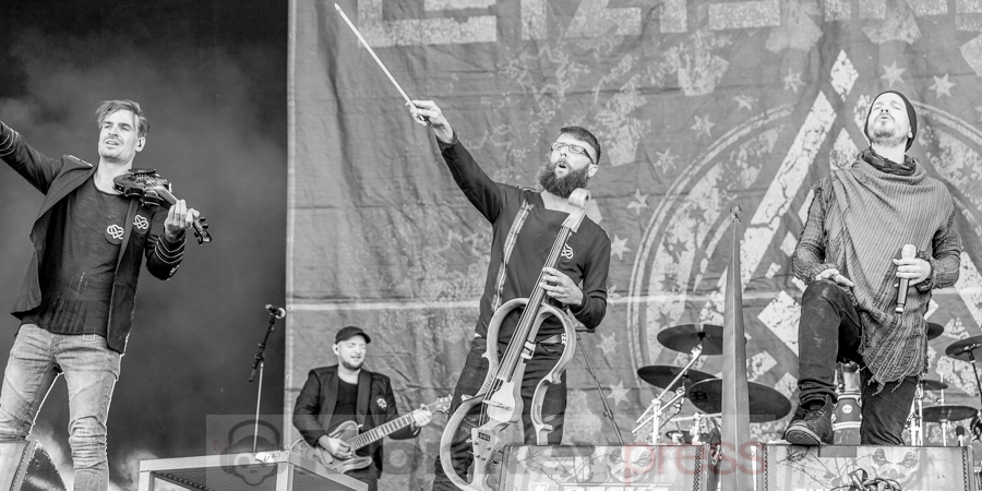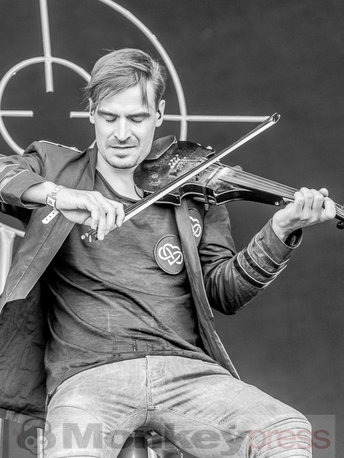 Es folgte ein musikalischer Bruch, es wurde rockig mit klassischen Motiven. Mit Letzte Instanz kam eine Band, die auf eine bewegte Geschichte zurückblicken kann – das zeigt schon allein die Tatsache, dass nur noch ein Mitglied aus der Gründungsbesetzung mit dabei ist. Aber eingespielt ist die Band auch in der jetzigen Besetzung, was Stücke wie Wir sind eins gut zeigen konnten. Klassische Instrumente wie Streicher trafen auf Rock-Besetzung und vereinten sich zu einem hymnischen Ganzen. Mal schneller, mal ruhiger, auch mal mit Mut zum Gitarrensolo gelang es der Band hier, das Publikum mitzuziehen, bei Finsternis wurde beispielsweise auch munter mitgesungen.