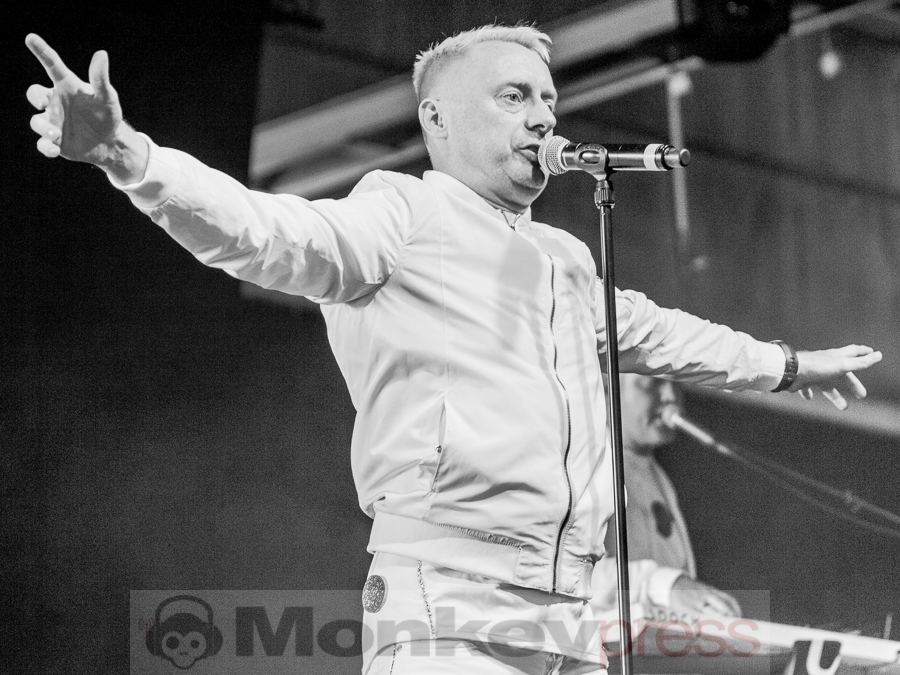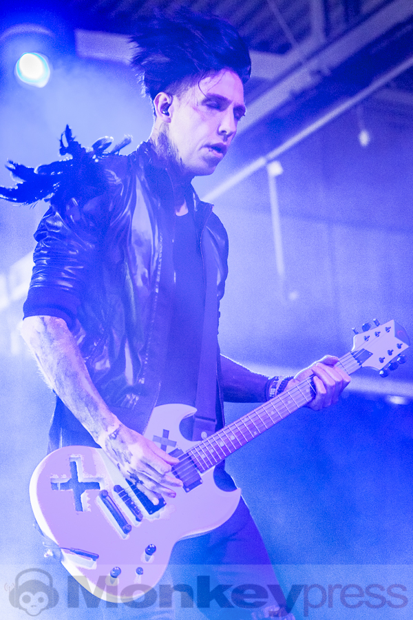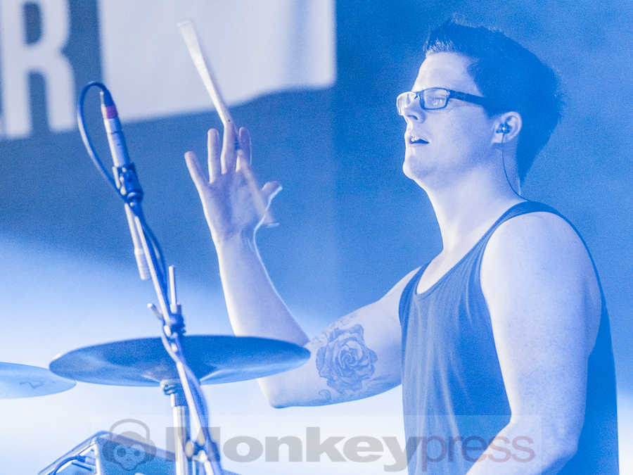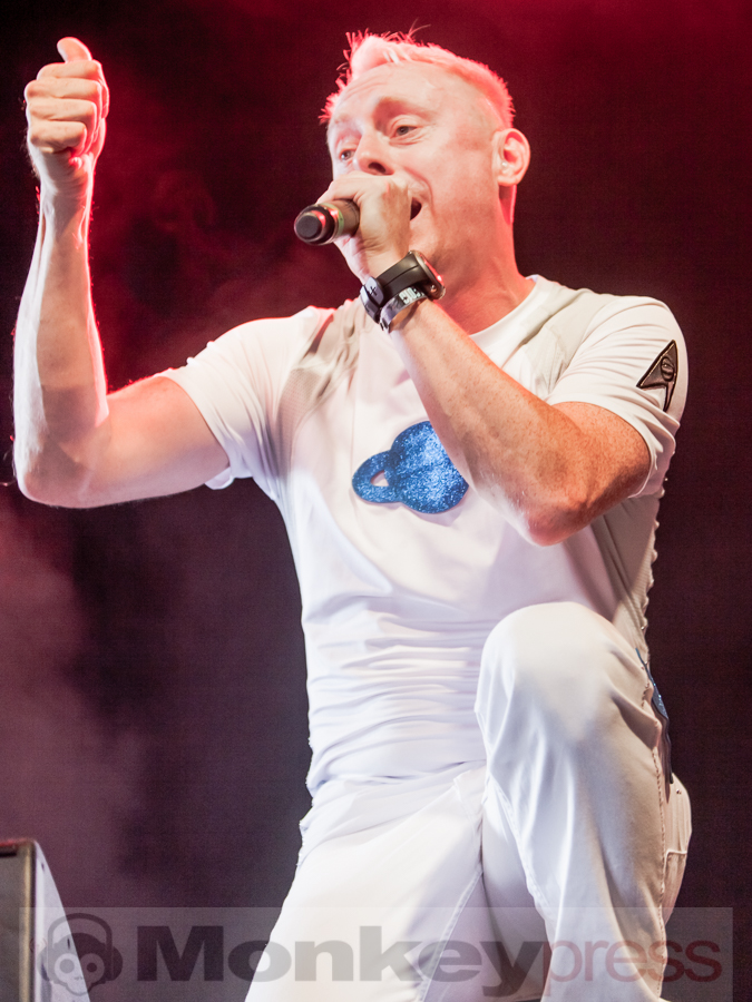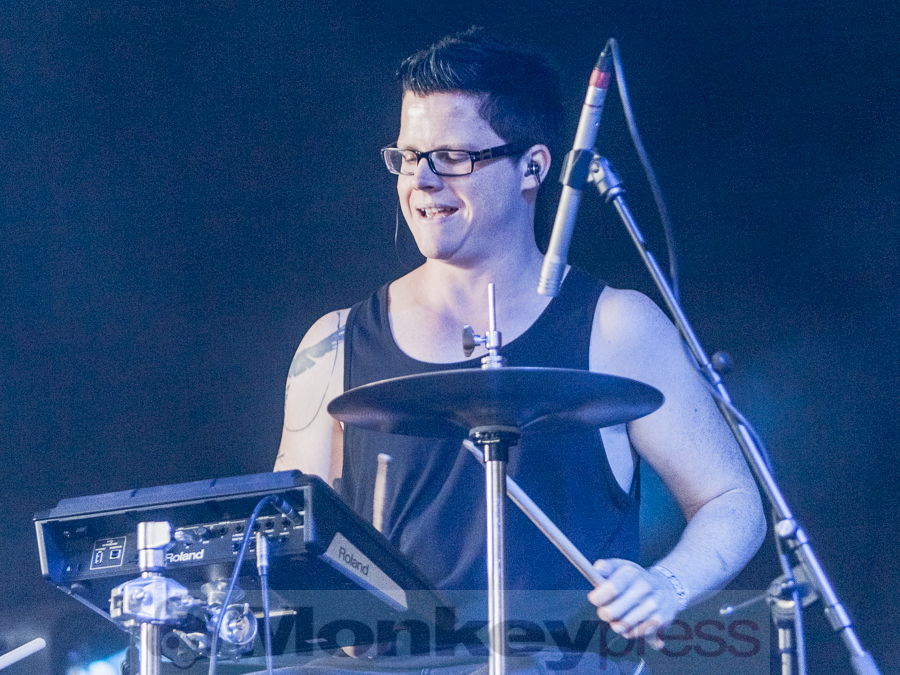 Im Hangar war es nun an der Zeit für den Headliner des Abends – Chris Corner hat mit IAMX diesen Job übernommen und zeigte eine Stunde lang, dass er ihn sich durch und durch verdient hat. Schon beim Opener I Come With Knives war der Hangar nicht nur gut gefüllt, sondern auch voller strahlender Gesichter und die Zuschauer gingen ordentlich mit bei dem, was sie geboten bekamen. Mit Videoprojektionen, guter Lichtshow und vor allem Bühnenshow konnte die Band überzeugen. Man war überrascht, wie viele bekannte Stücke inzwischen dabei sind, Titel wie Spit It Out konnten nach wie vor überzeugen. Zum Finale dann noch einmal ein ganz großer Sprung zurück zum Debüt-Album mit dessen titelgebendem Kiss & Swallow, das noch einmal gemeinsam gefeiert wurde.